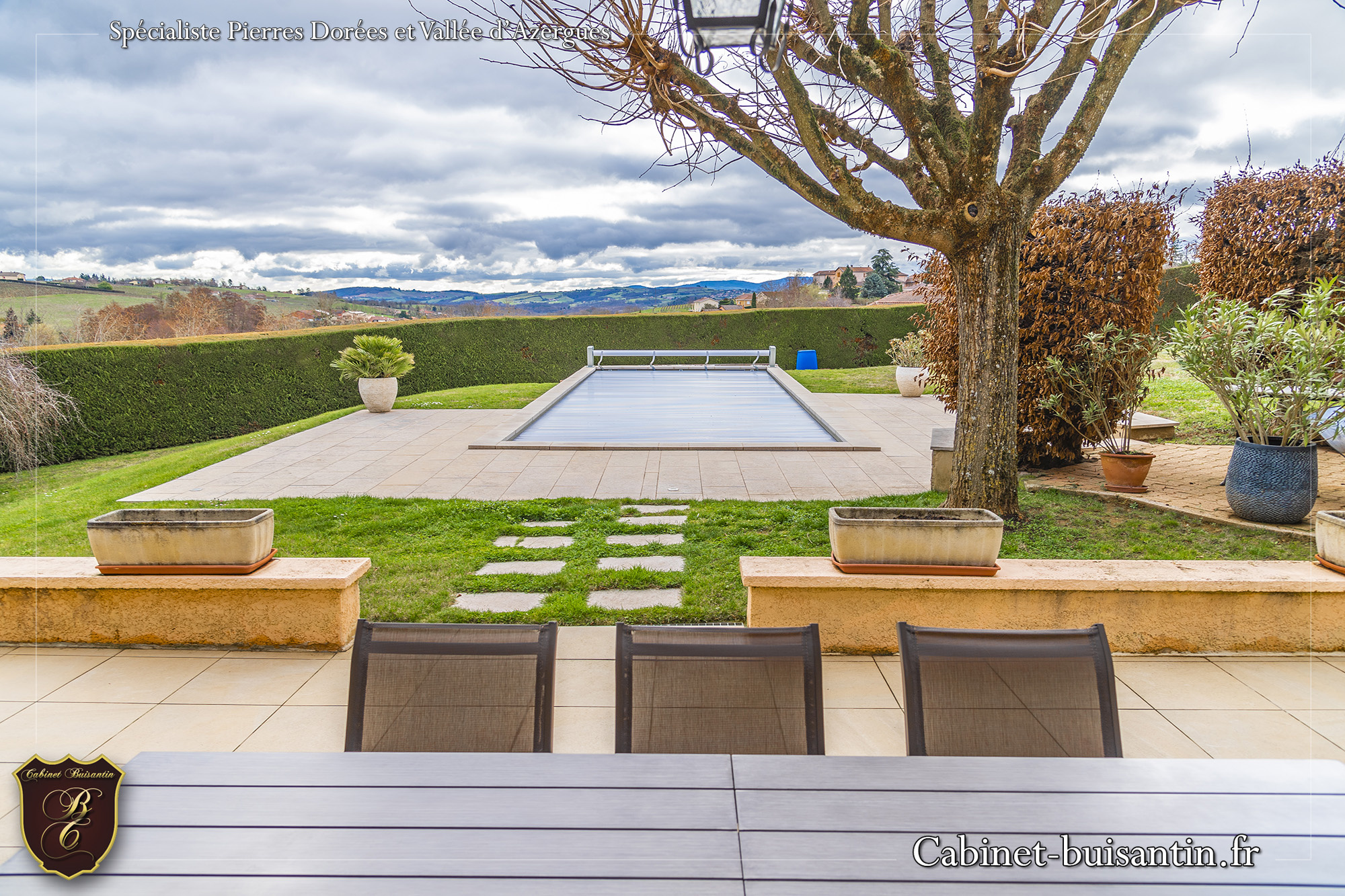 EXCLUSIVITE - SAINT VÉRAND - À seulement 2 minutes des commerces, découvrez cette maison d'exception de 170 m2 où chaque détail a été pensé pour le bien-être de votre famille. Dominant les collines environnantes, elle offre une vue dégagée qui change au fil des saisons. Dès l'entrée, le charme opère : un séjour-salon lumineux d'environ 65 m2 avec poêle à granulés et une cuisine équipée s'ouvrent sur une terrasse d'env. 100 m2, véritable extension de la maison pour vos soirées d'été. Avec ses 5 chambres (dont une de plain-pied avec salle de bains), salle d'eau et sa mezzanine/bureau, chacun y trouvera son espace. Côté détente, plongez dans une piscine chauffée (11m x 4 m) au coeur d'un jardin clos et arboré de 2 260 m2. Un sous-sol complet avec trois garages et une cave vient parfaire ce bien aux prestations irréprochables. Terrain constructible: agrandissement possible...