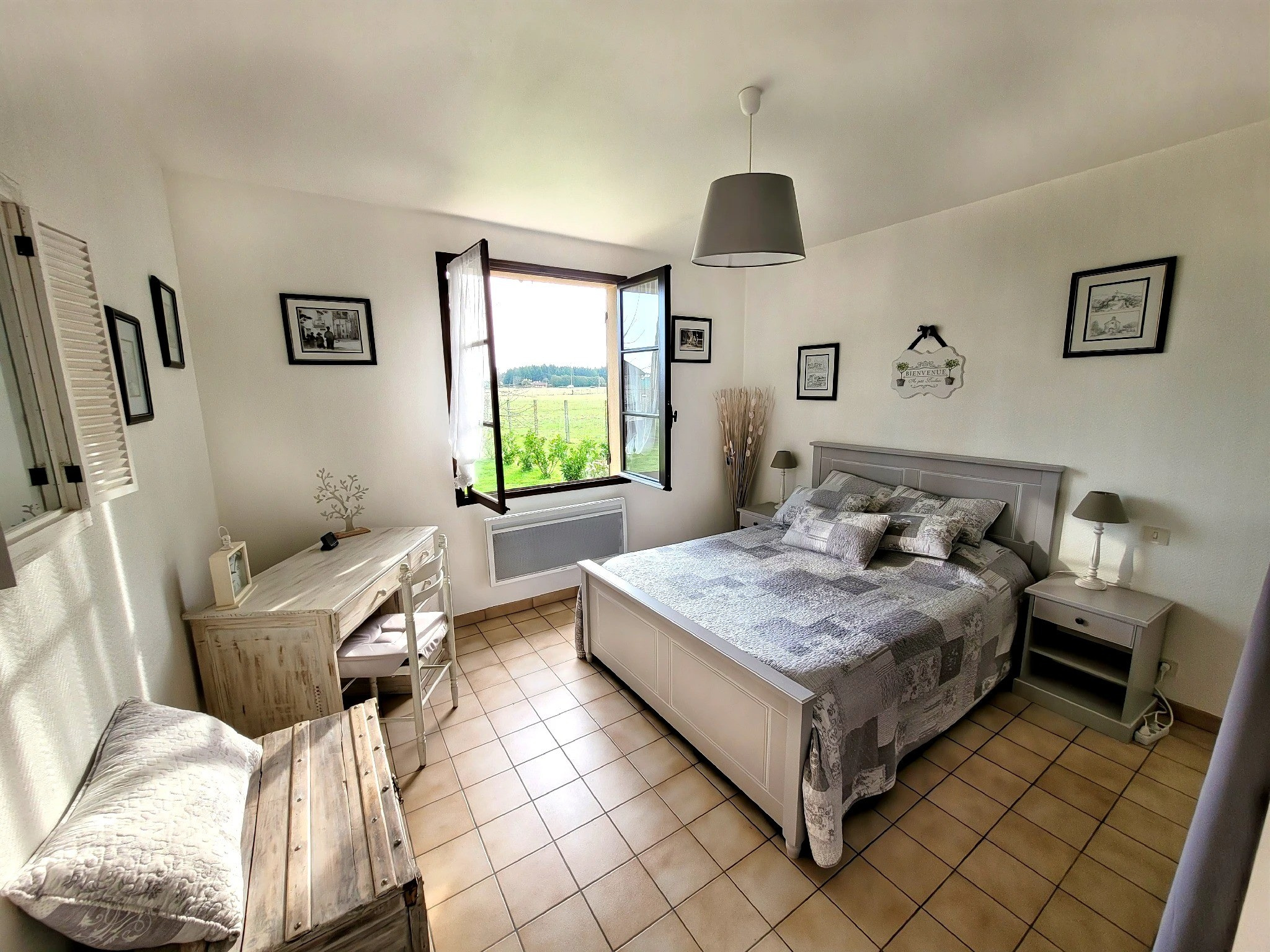 À l'extérieur, vous profitez d'un environnement privilégié avec piscine coque chauffée de 2022, plusieurs terrasses et une vue dégagée sur la campagne.
