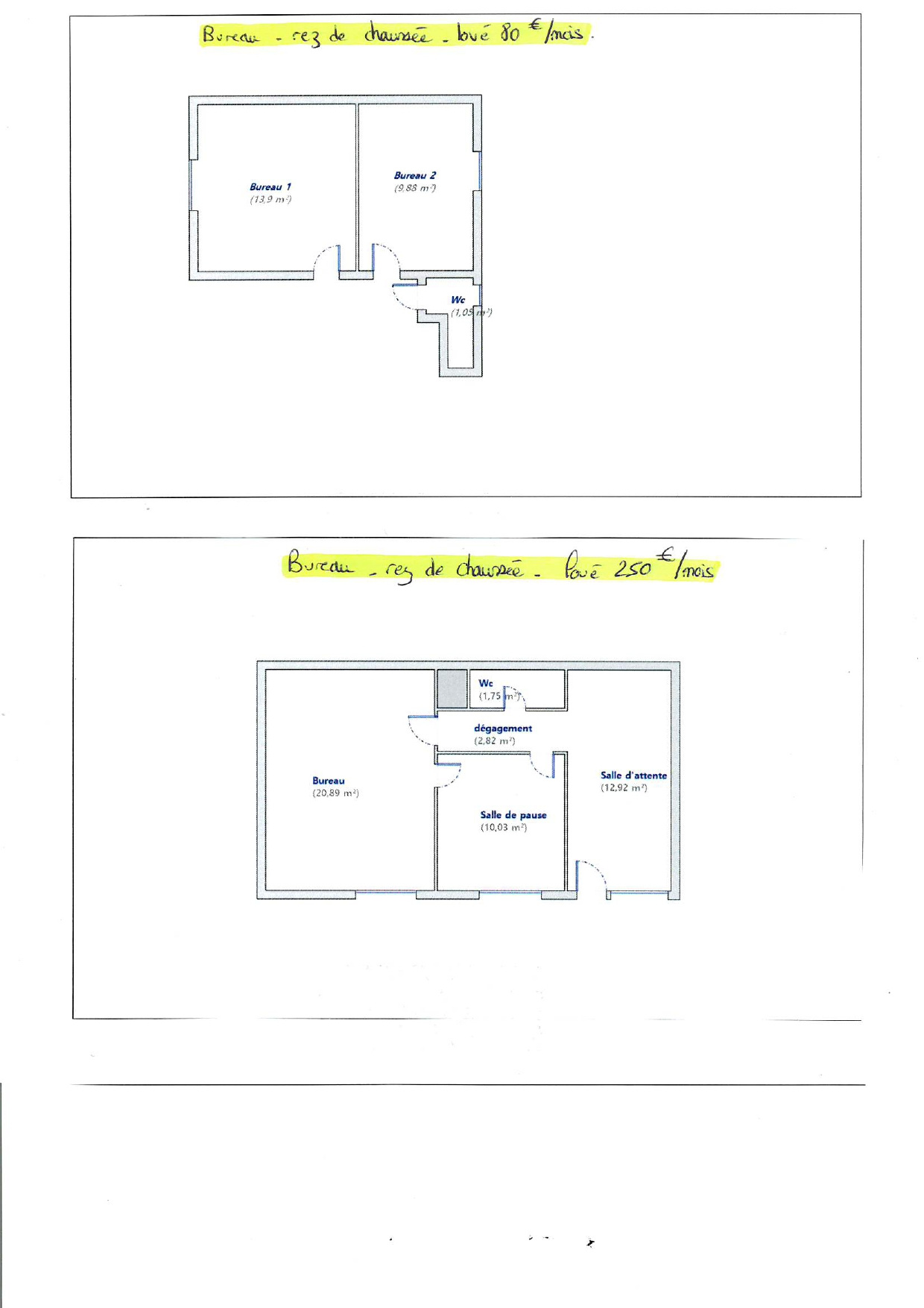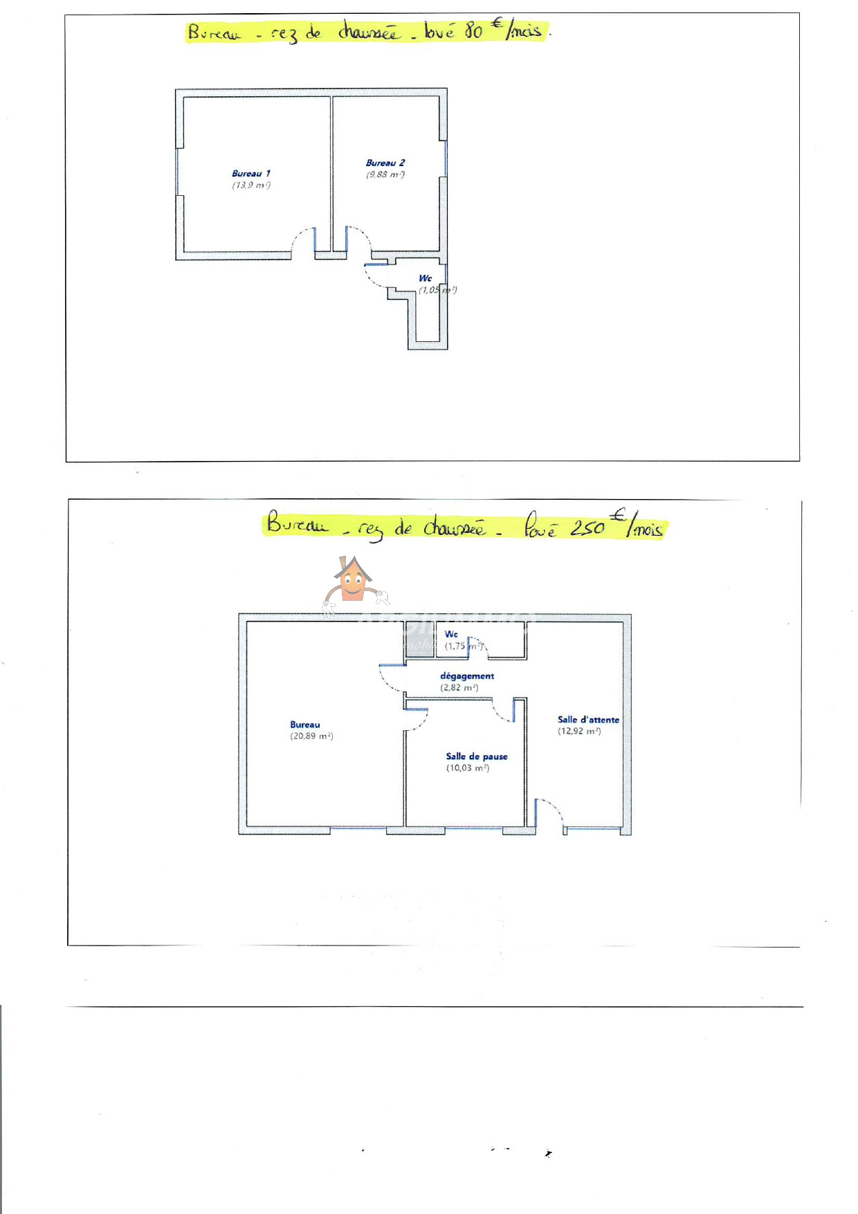 - 2 bureaux loués - 24.83m2 - (80EUR/mois)