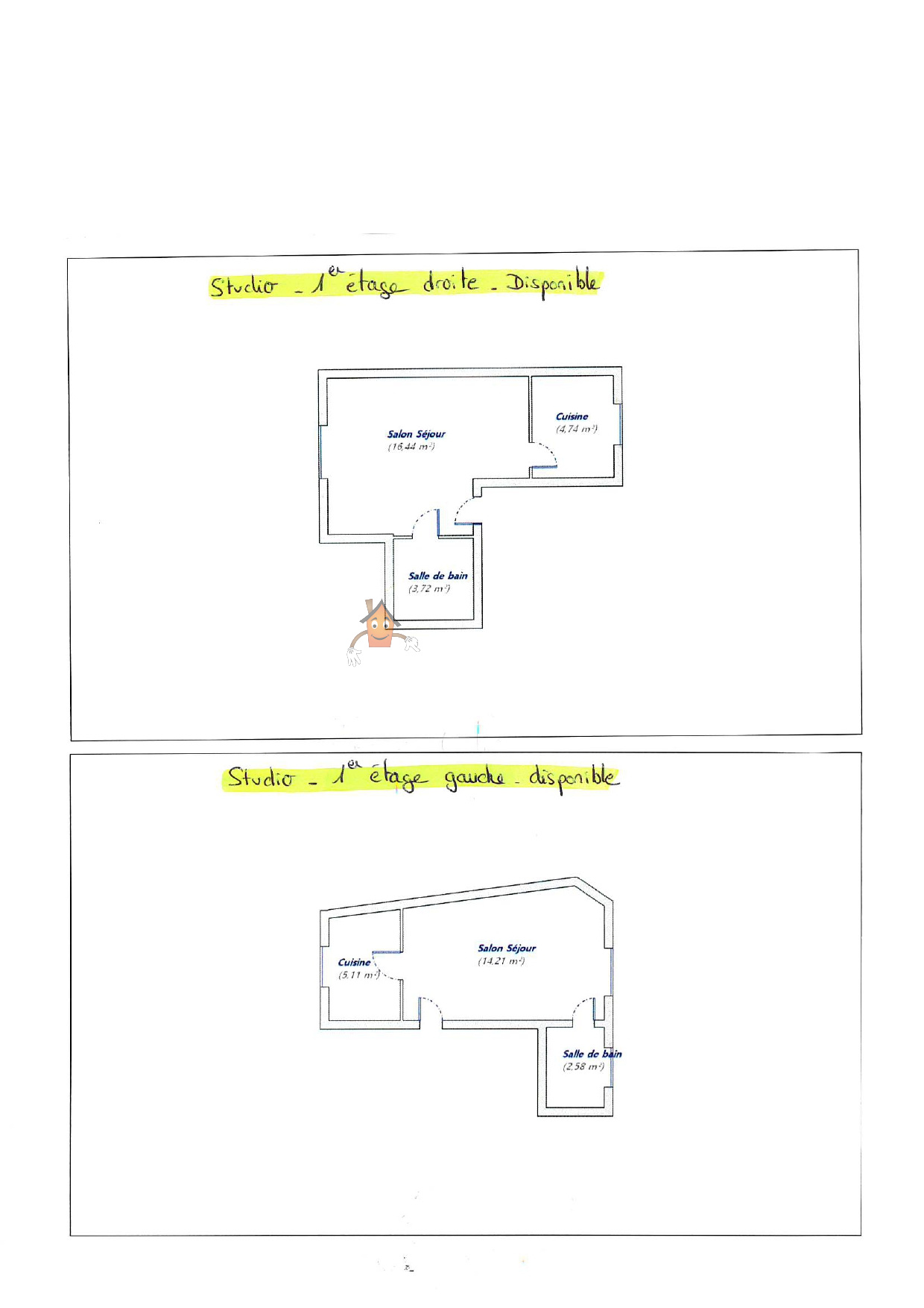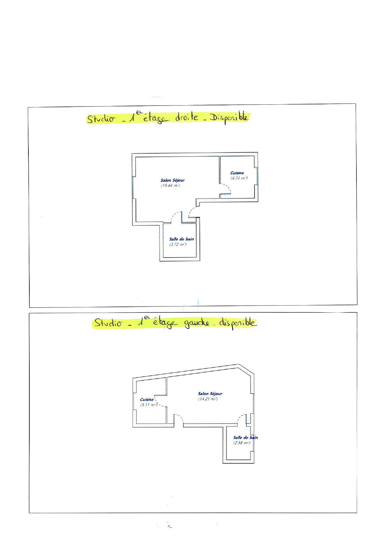 - 4 studios à rénover. Surfaces : 24.90m2, 21.90m2, 24.12m2, 22.24m2