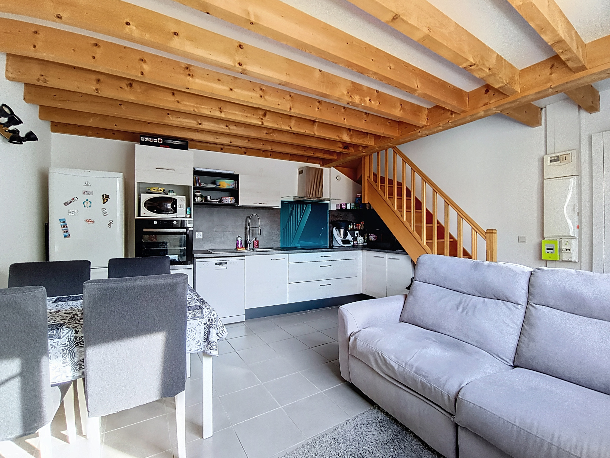 Dès l'entrée, vous découvrez une pièce de vie lumineuse avec une cuisine ouverte, fonctionnelle et parfaitement agencée. Un espace convivial, agréable à vivre au quotidien comme pour recevoir.
