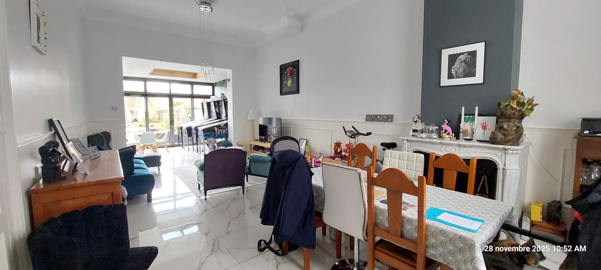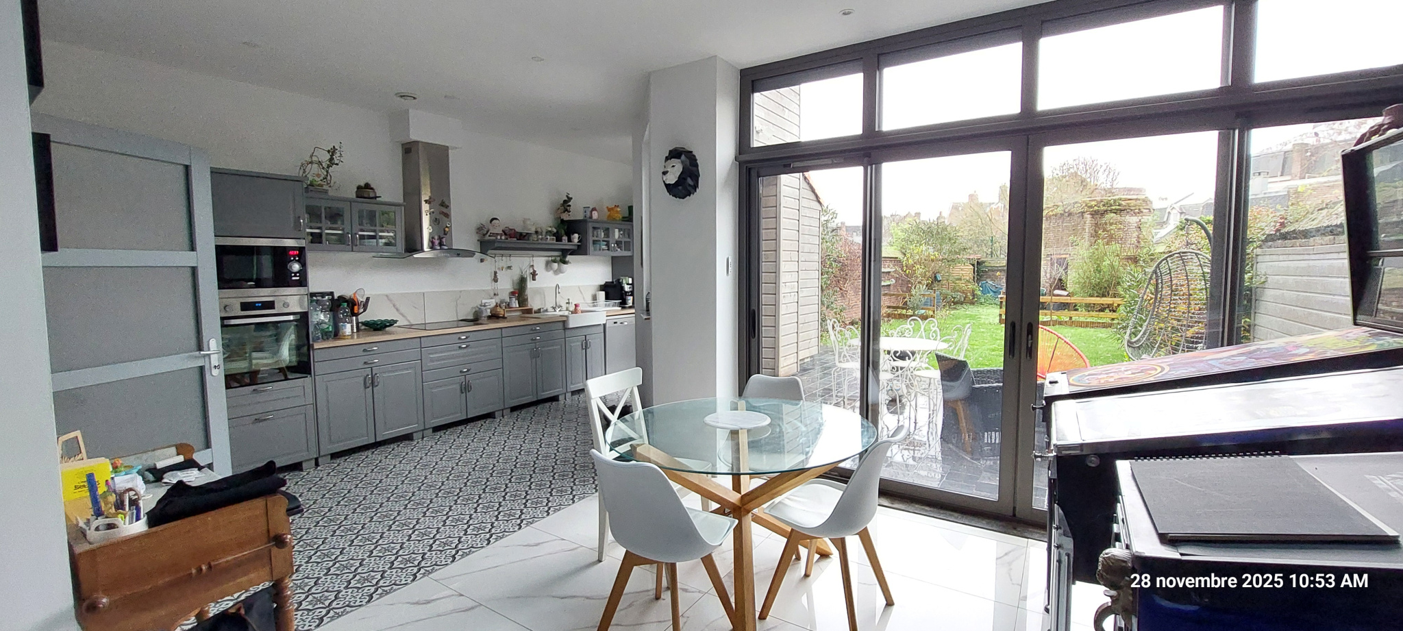 - au rez-de-chaussée : hall d'entrée, grand salon/séjour très lumineux de 38 m2, séjour ouvert sur cuisine équipée offrant une belle vue sur le jardin, wc