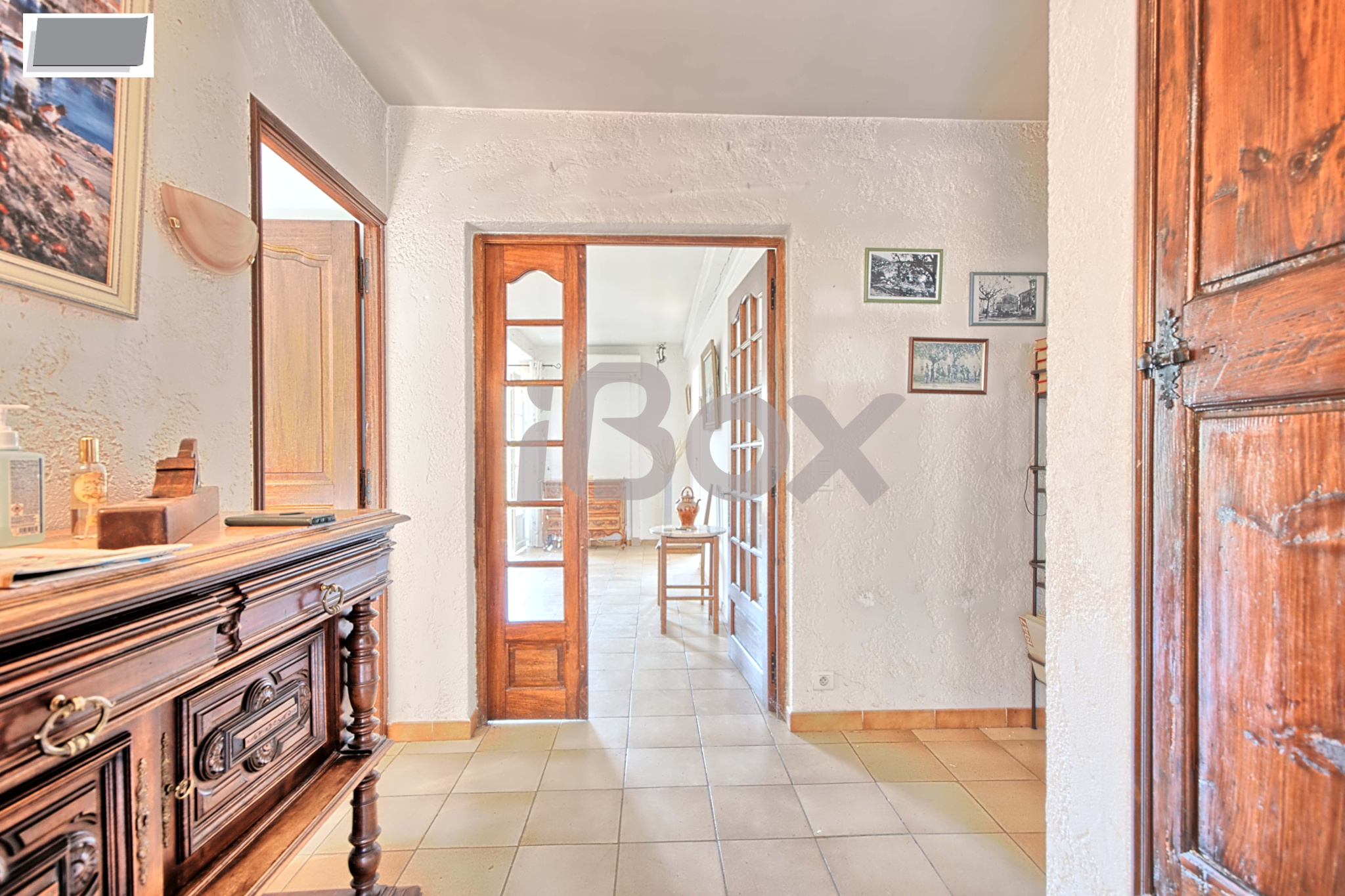 Hall d'entrée desservant un beau séjour de 35 m2 avec belle cheminée accès sur terrasse plein sud.