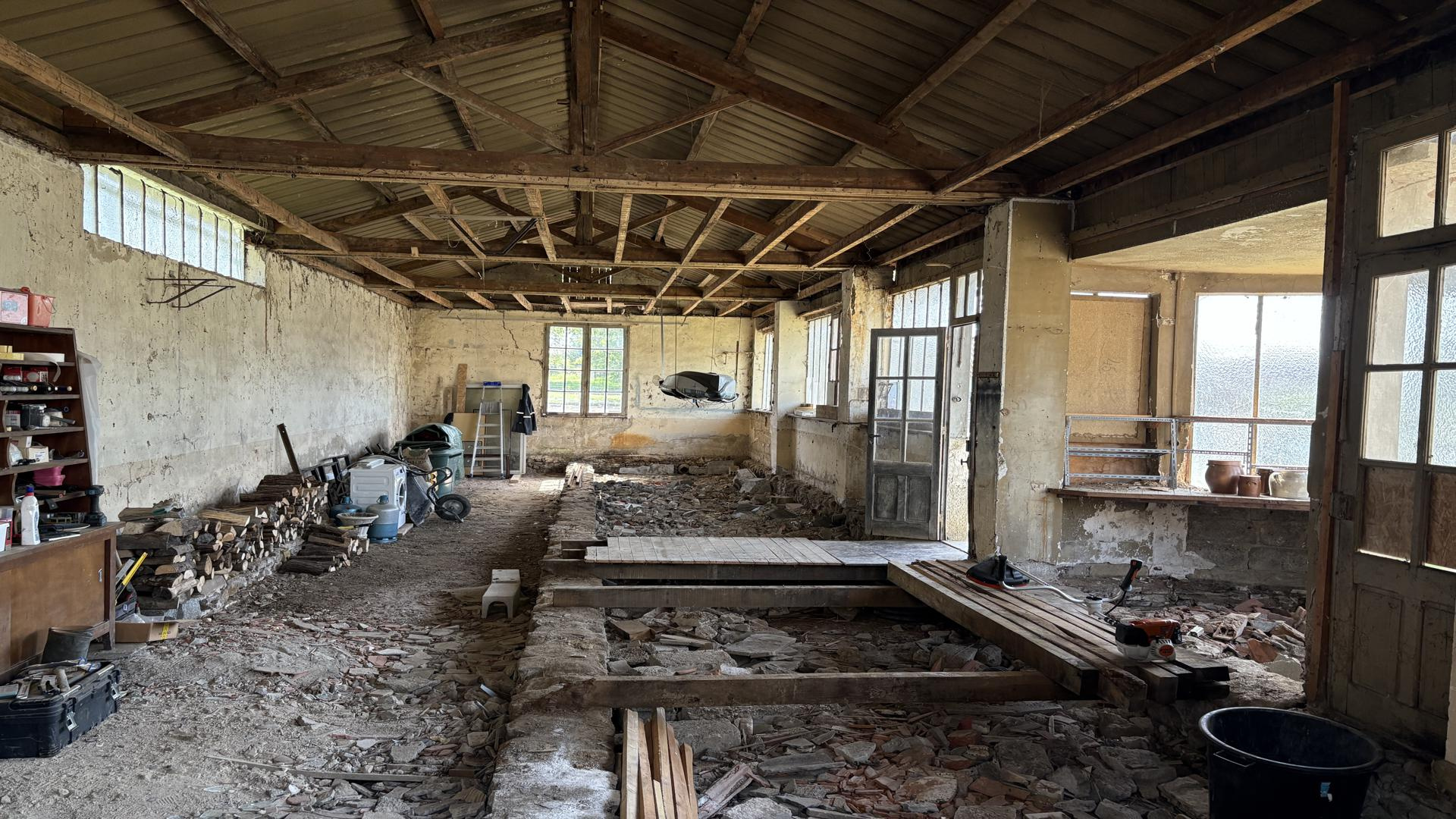 Un bâtiment à usage d'atelier de 107 m2 (19.84 m X 5.4 m) avec combles pouvant être aménagés en logement(s). Certificat d'urbanisme autorisant la transfromation de l'atelier en 1 ou 2 logements. Compteurs d'eau et d'électricité à installer - désservi par l'assainissement collectif - terrain autour. Accès à la parcelle par une ouverture de 3 mètres de large. Pourrait également convenir à un artisan entre autres.