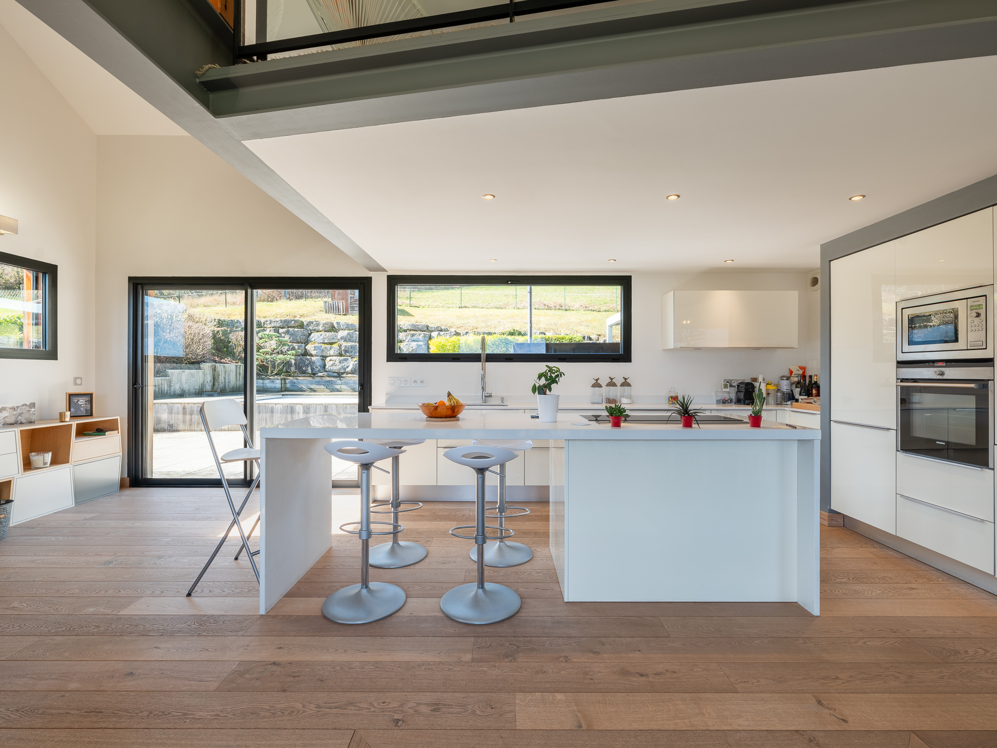 La cuisine signée Vercauteren est parfaitement équipée pour préparer vos repas, tout en vous offrant une vue imprenable sur le lac et les massifs.