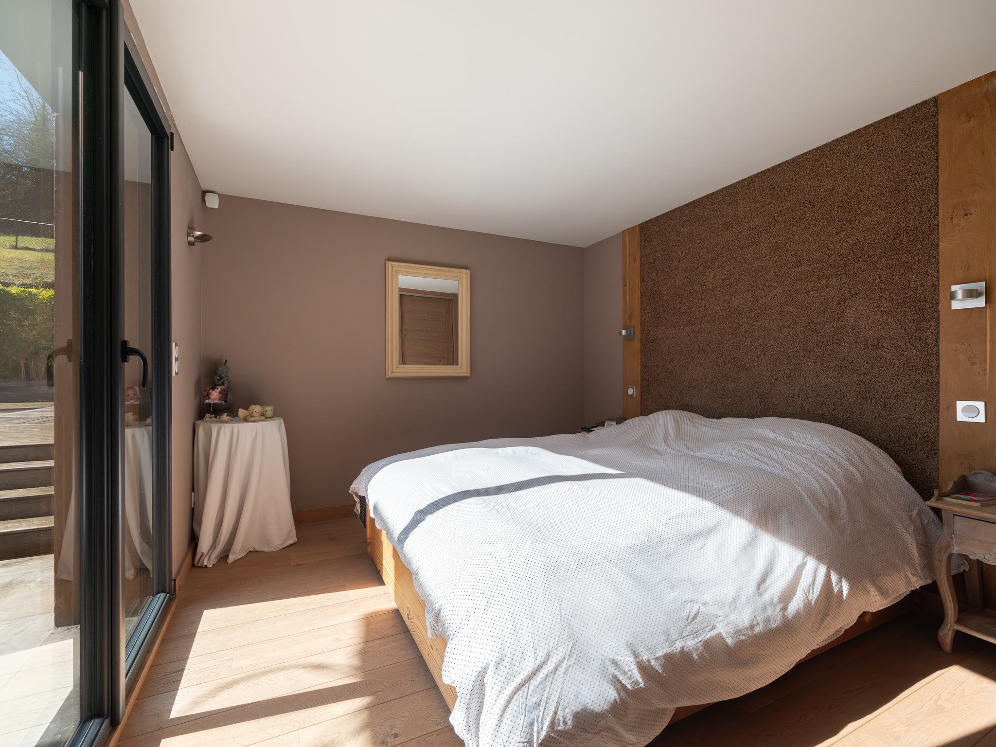 Une suite parentale avec dressing et salle de douche vient parfaire ce niveau, donnant sur la terrasse et sa piscine. Au dernier niveau, une mezzanine de 25 m2 offre un espace modulable -- coin lecture, bureau ou salon de jeux -- et une belle perspective sur l'ensemble de la maison. À l'extérieur, des aménagements soignés garantissent un confort prolongé : piscine chauffée, pergola bioclimatique automatisée et jardin paysagé agrémenté de trois beaux cyprès. En contrebas de la propriété, un double garage et plusieurs places de stationnement complètent ce bien.