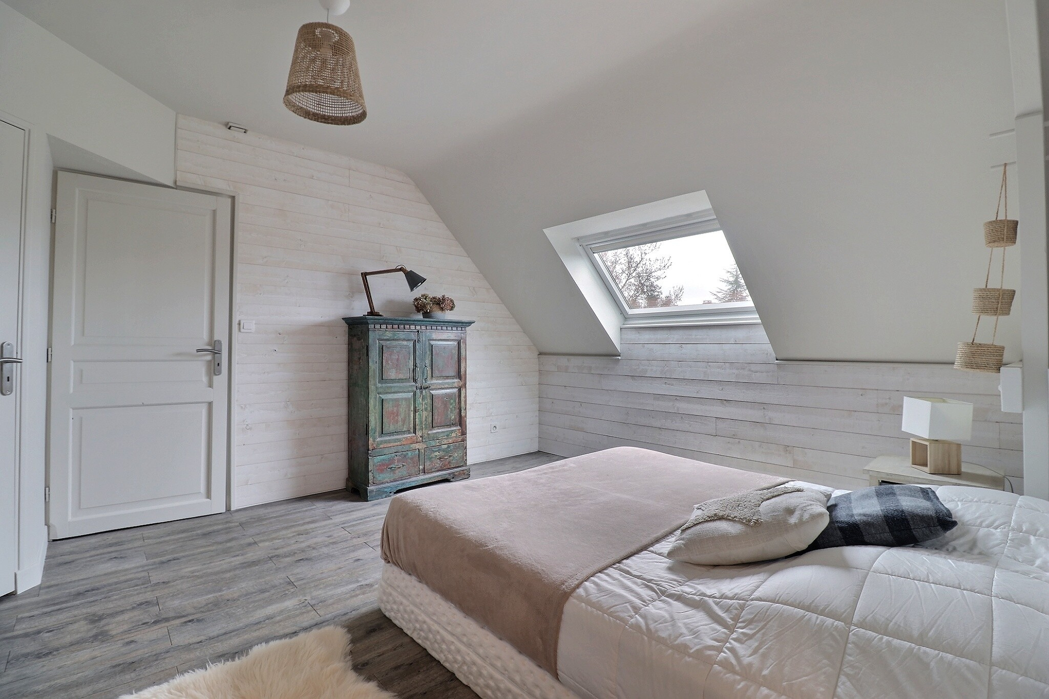 À l'étage, vous trouverez deux chambres, un grand bureau avec rangements, une salle de cinéma, ainsi qu'une salle d'eau avec WC.