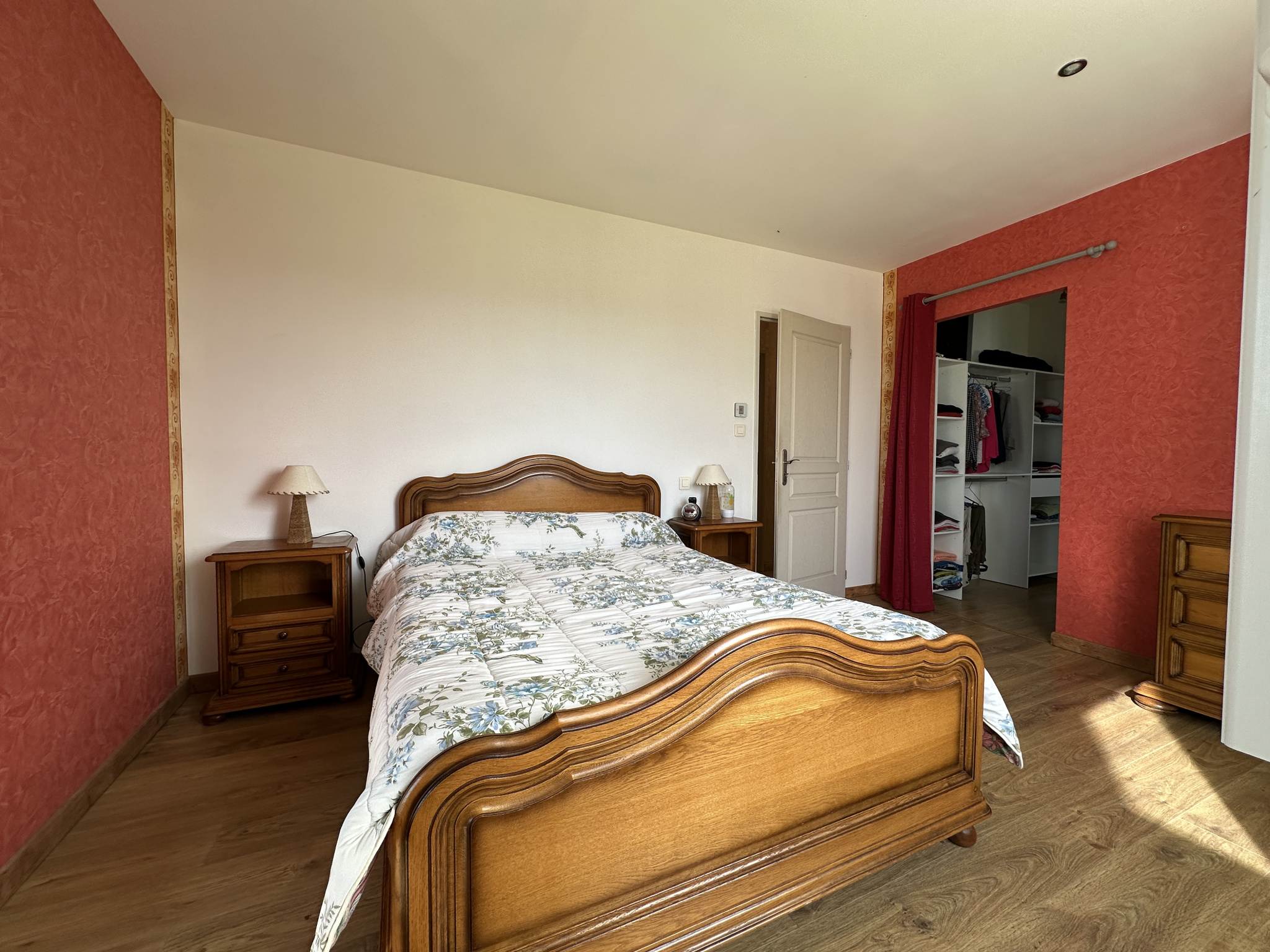 L'espace nuit se compose de quatre chambres, dont une suite parentale disposant de son propre dressing et de sa salle d'eau avec WC, ainsi qu'un balcon privatif offrant une vue apaisante sur la campagne. Une seconde salle d'eau commune est à disposition pour les autres chambres, ainsi qu'un WC indépendant pour plus de confort au quotidien.