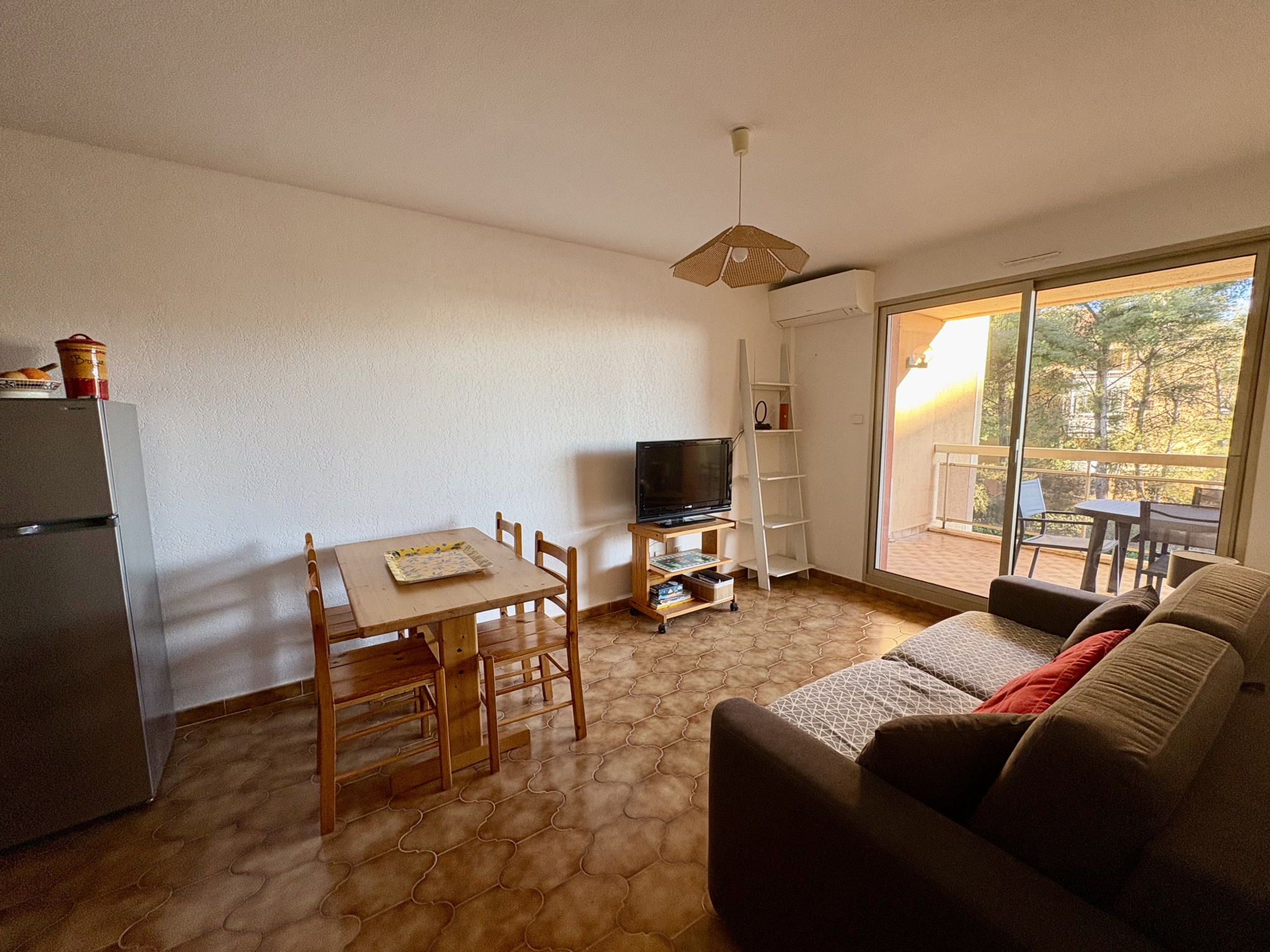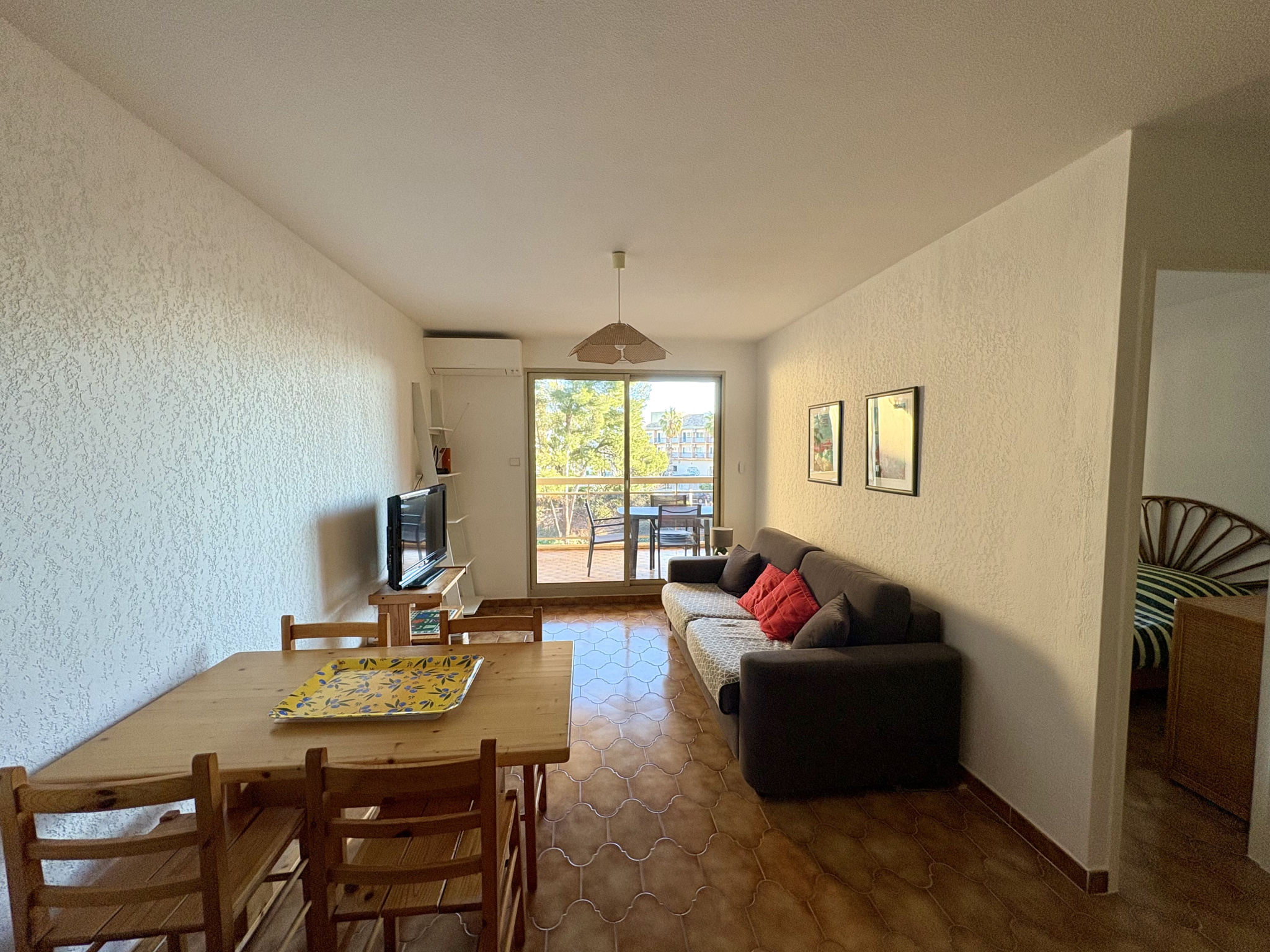 En étage avec ascenseur, il se compose d'une entrée avec placard, d'une agréable pièce de vie climatisée avec son coin cuisine ouverte, donnant accès à une belle terrasse exposée, idéale pour profiter d'une vue dégagée et d'un aperçu mer. La chambre séparée s'ouvre également sur la terrasse, offrant ainsi un espace nuit confortable et paisible. Vous apprécierez la salle d'eau récemment rénovée et les WC indépendants.