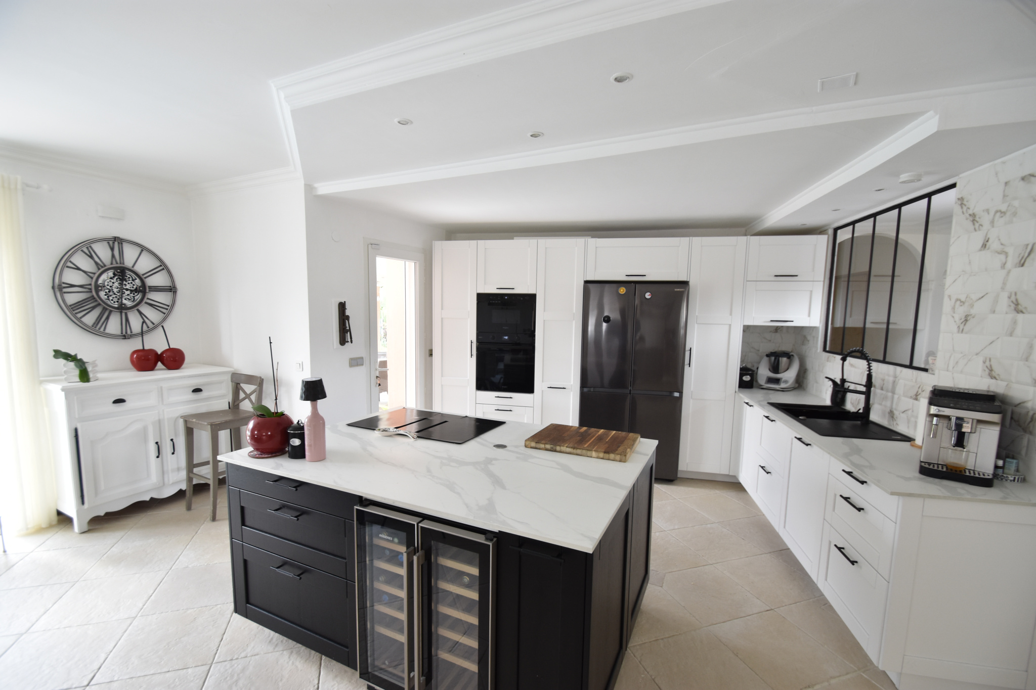 Dès l'entrée, vous serez séduits par un spacieux salon avec cheminée, ouvert sur une cuisine moderne, aménagée et entièrement équipée, le tout donnant accès à une agréable terrasse idéale pour vos repas en extérieur.