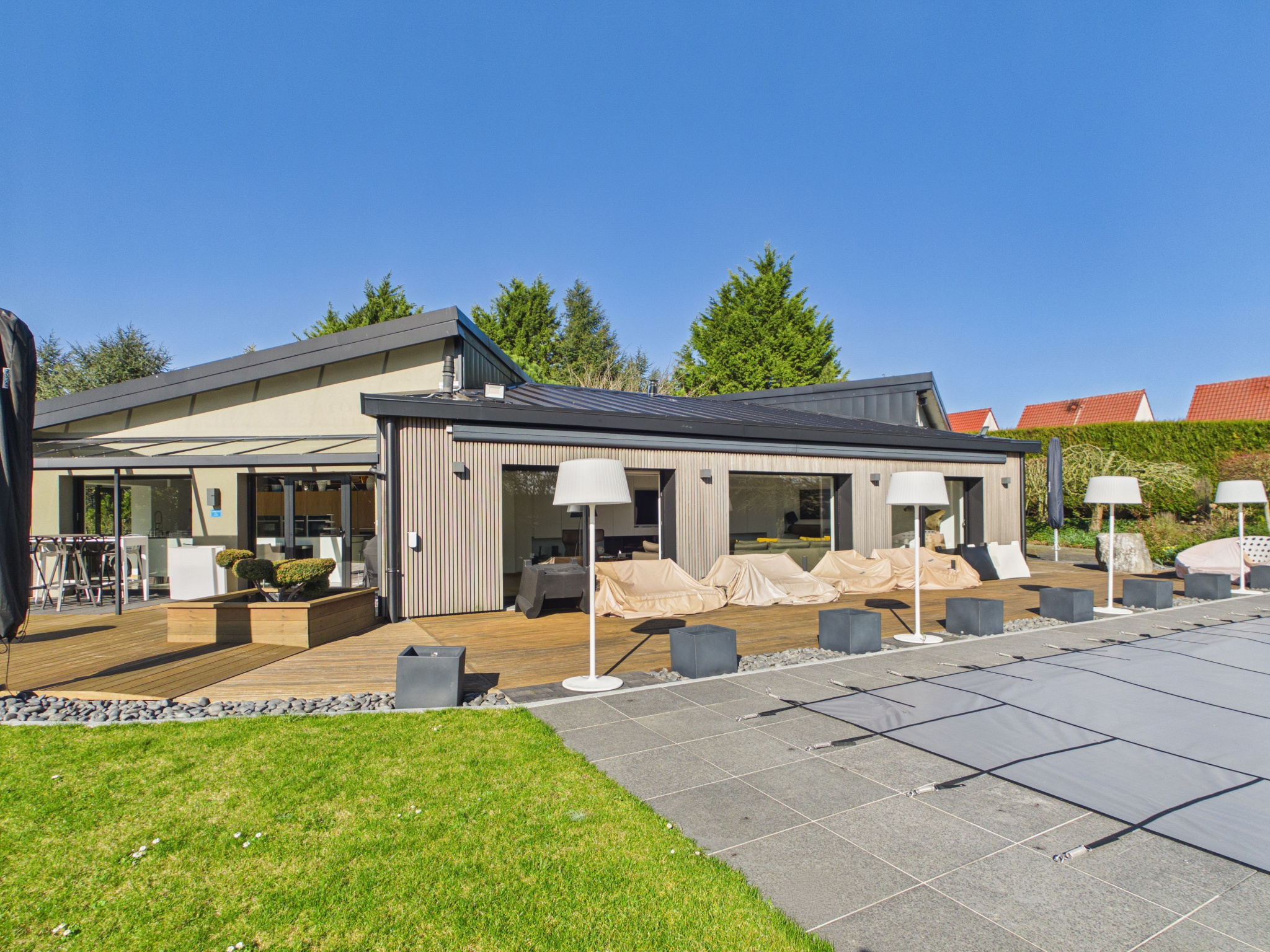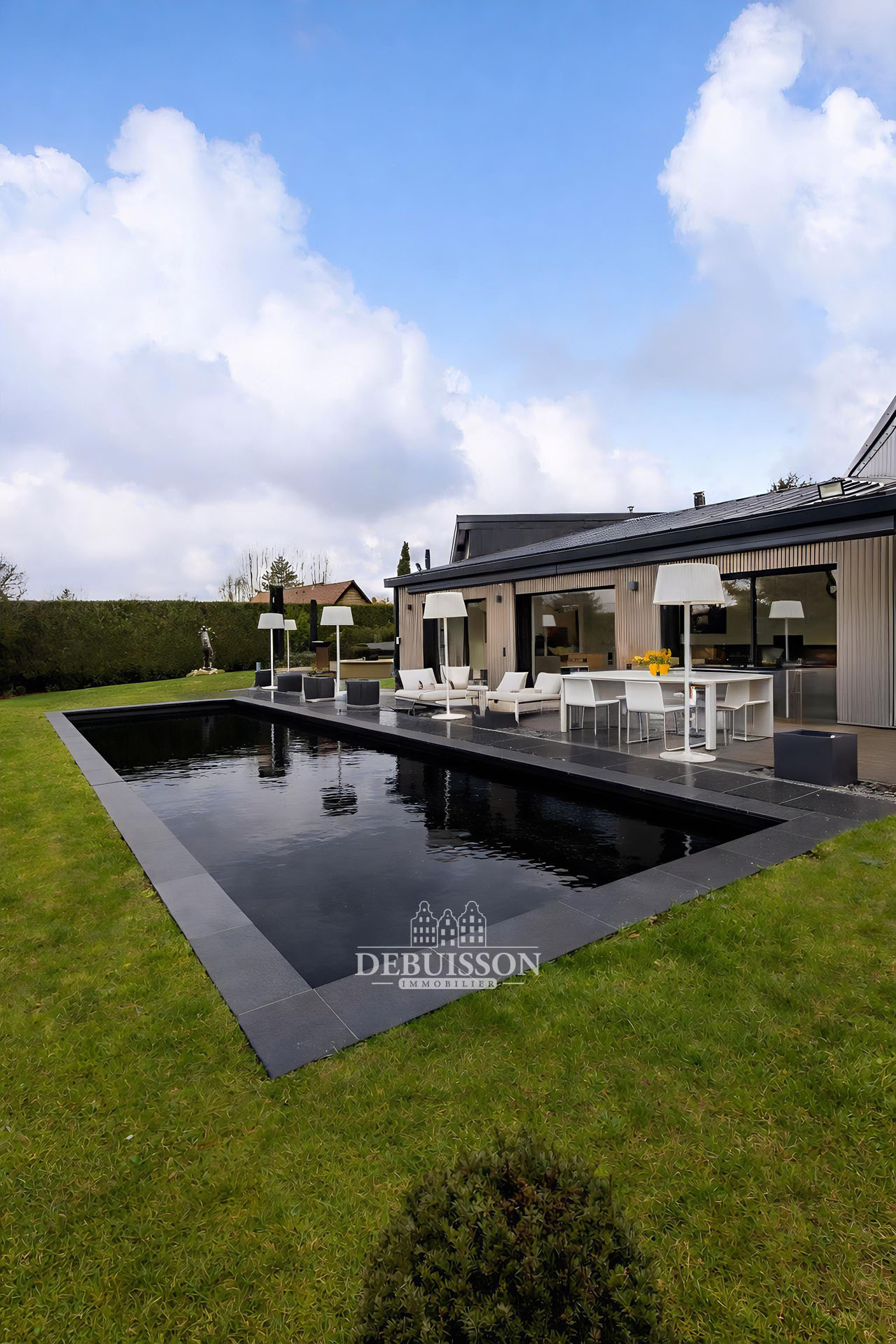 Les volumes sont agréables , elle dispose d'un rez-de-chaussée avec une cuisine moderne tournée vers le jardin et sa terrasse, un espace détente avec son poèle à bois, le bar offre un bow window et une salle-à-manger spacieuse, un salon baigné de lumière donnant sur la terrasse et la piscine chauffée, une masterbedroom avec ses placards de rangement donnant sur une nouvelle terrasse exposée au soleil levant, une salle de bains avec doubles vasques en corian, une baignoire posée dans le bow window avec vue sur le jardin d'agrément, une vaste douche et un dressing.