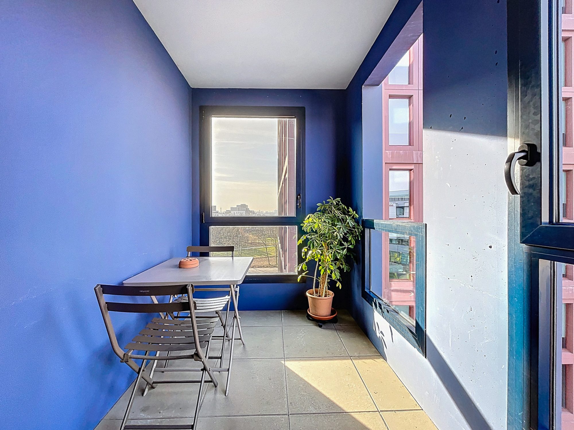 L'appartement se compose d'une entrée avec rangements menant vers un séjour ouvert sur une cuisine US entièrement équipée, prolongé par une loggia ouverte exposée ouest, offrant un espace extérieur confortable.
