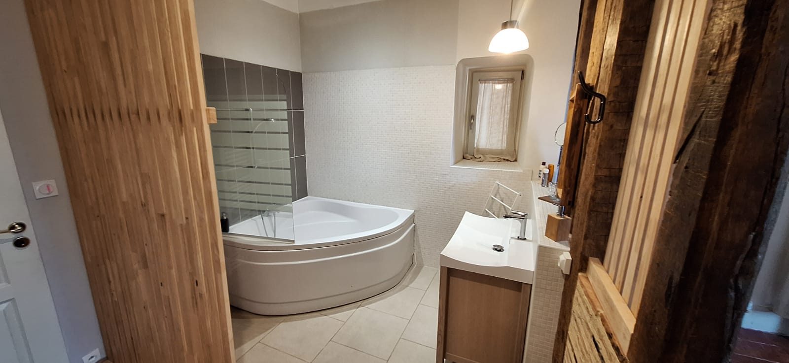 La demeure principale, avec une rénovation de grande qualité, marie avec élégance authenticité et prestations contemporaines : pierres apparentes, volumes généreux, matériaux nobles et finitions soignées.