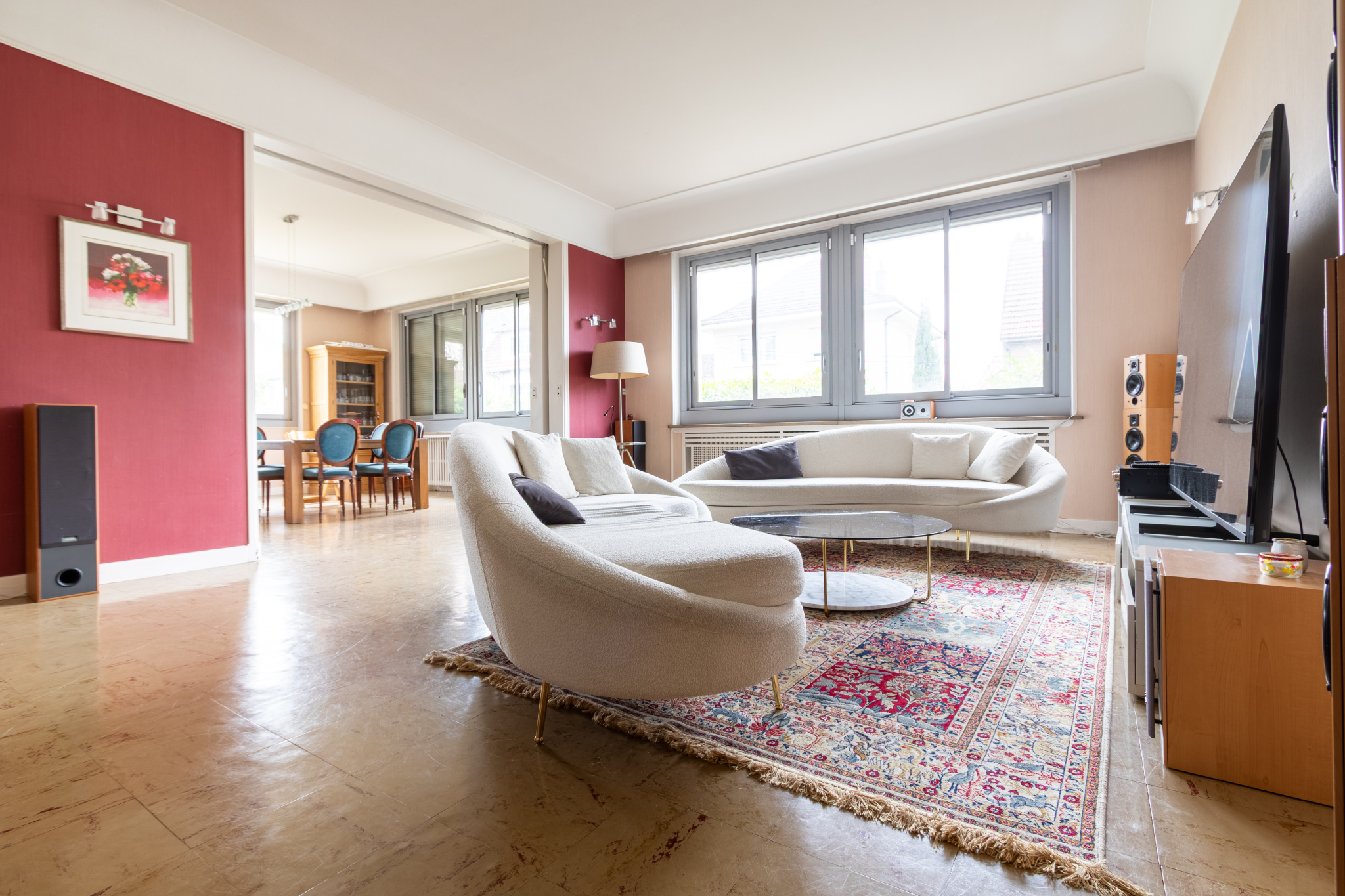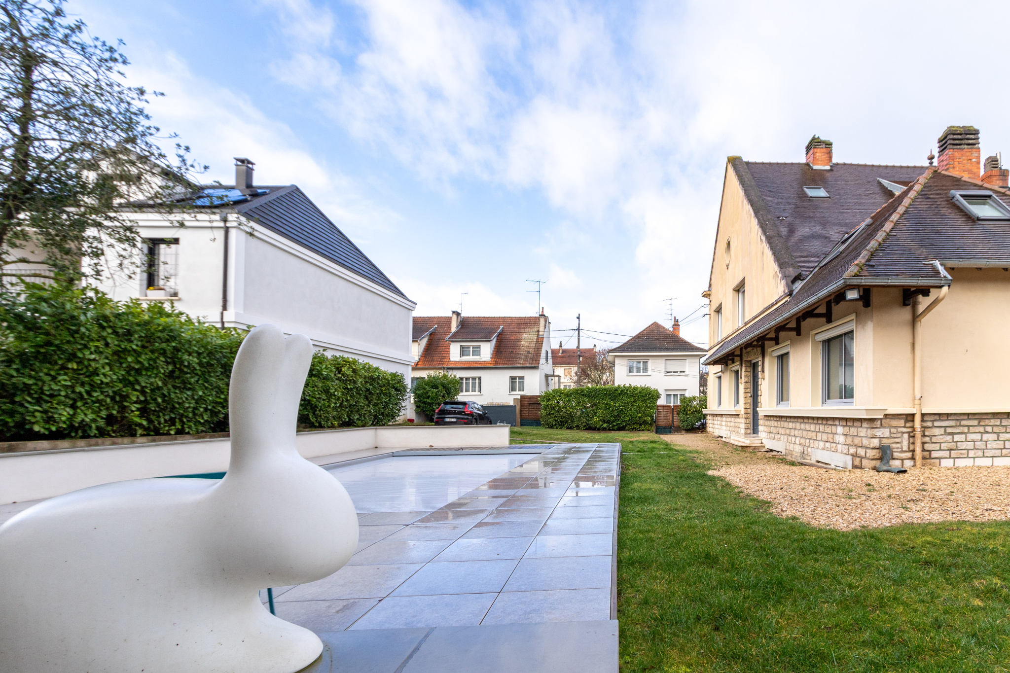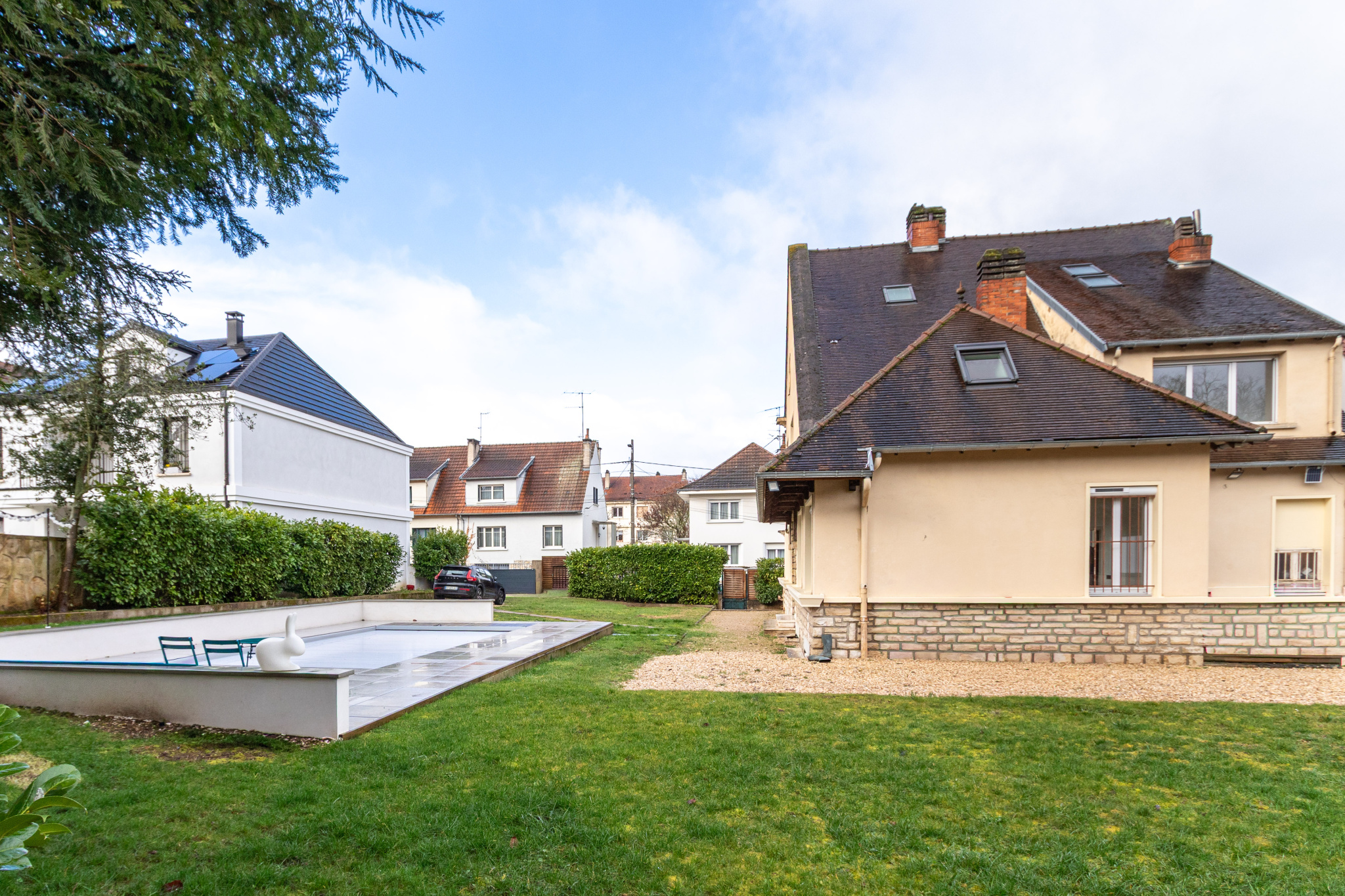 Belle maison cossue aux volumes généreux, donnant sur un grand jardin clos de plus de 1000m2 avec piscine.