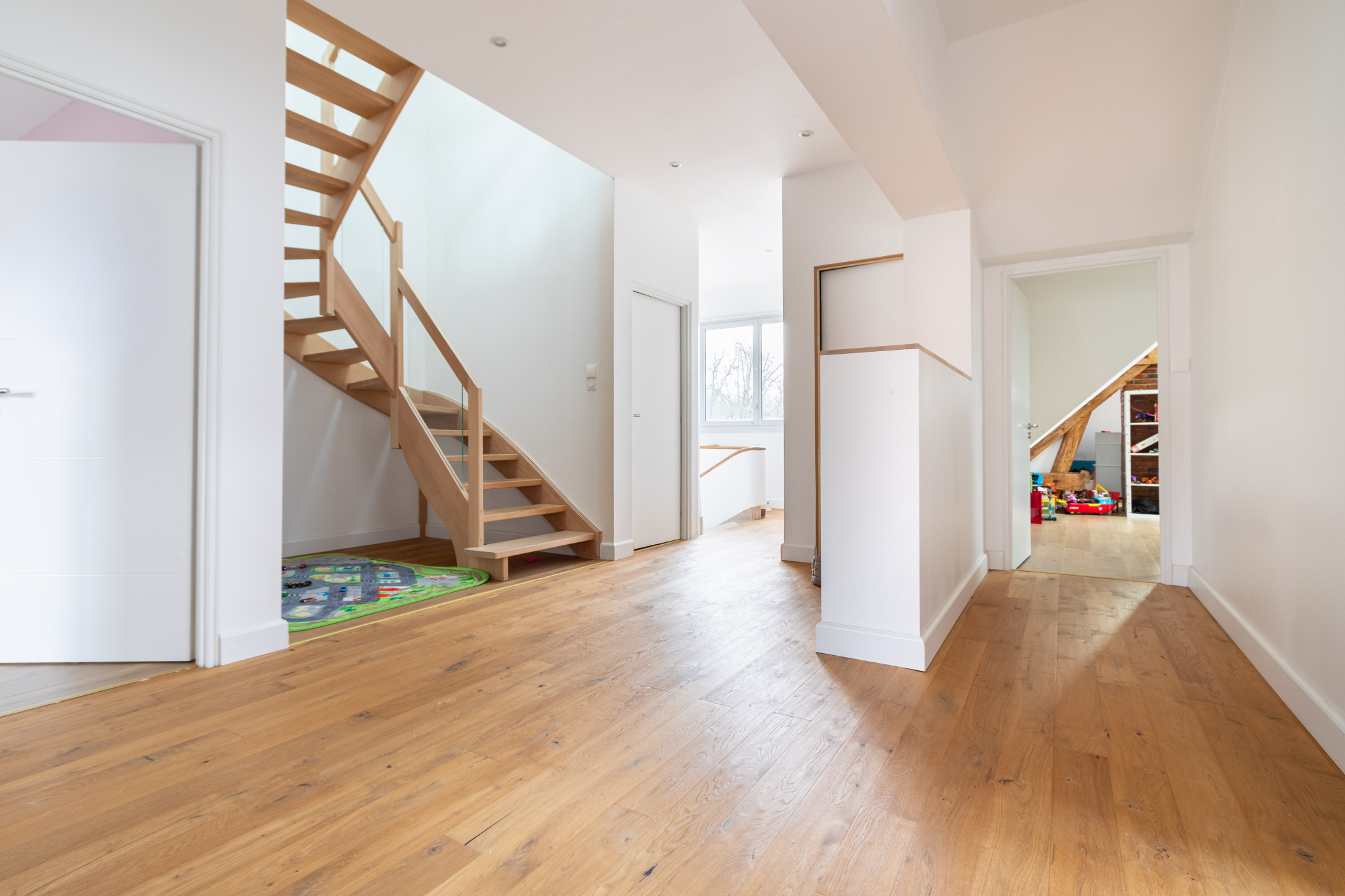 Au premier étage, une grande pièce palière dessert cinq chambres et une salle d'eau (possibilité d'en créer une deuxième) et au second, vous trouverez une chambre en suite avec dressing, bureau et salle d'eau créant un univers parental.