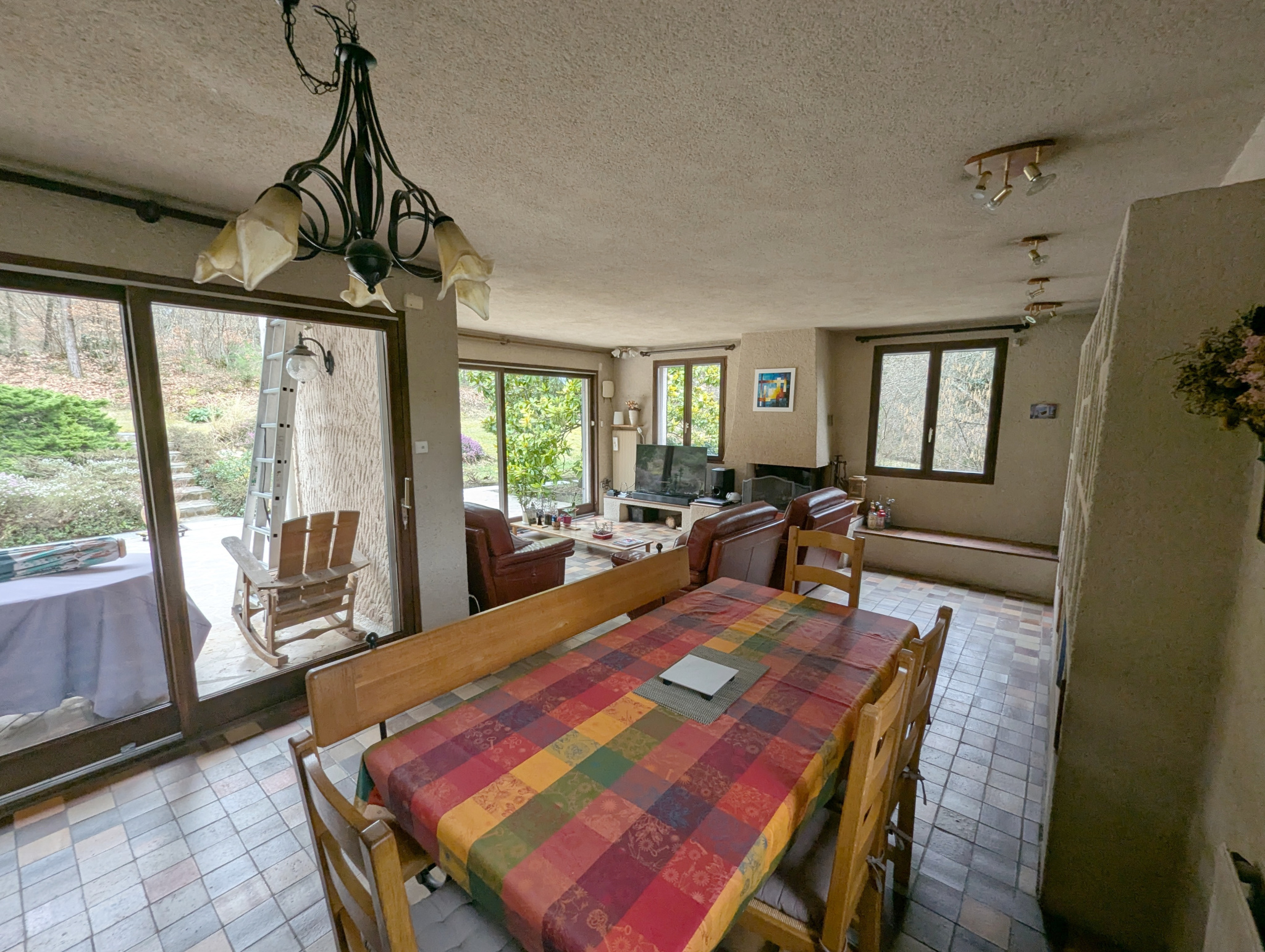 Elle est composée d'un hall d'entrée desservant une cuisine séparée aménagée, un séjour double avec cheminée avec terrasse, un cabinet de toilette, 2 chambres avec une salle d'eau et une buanderie.