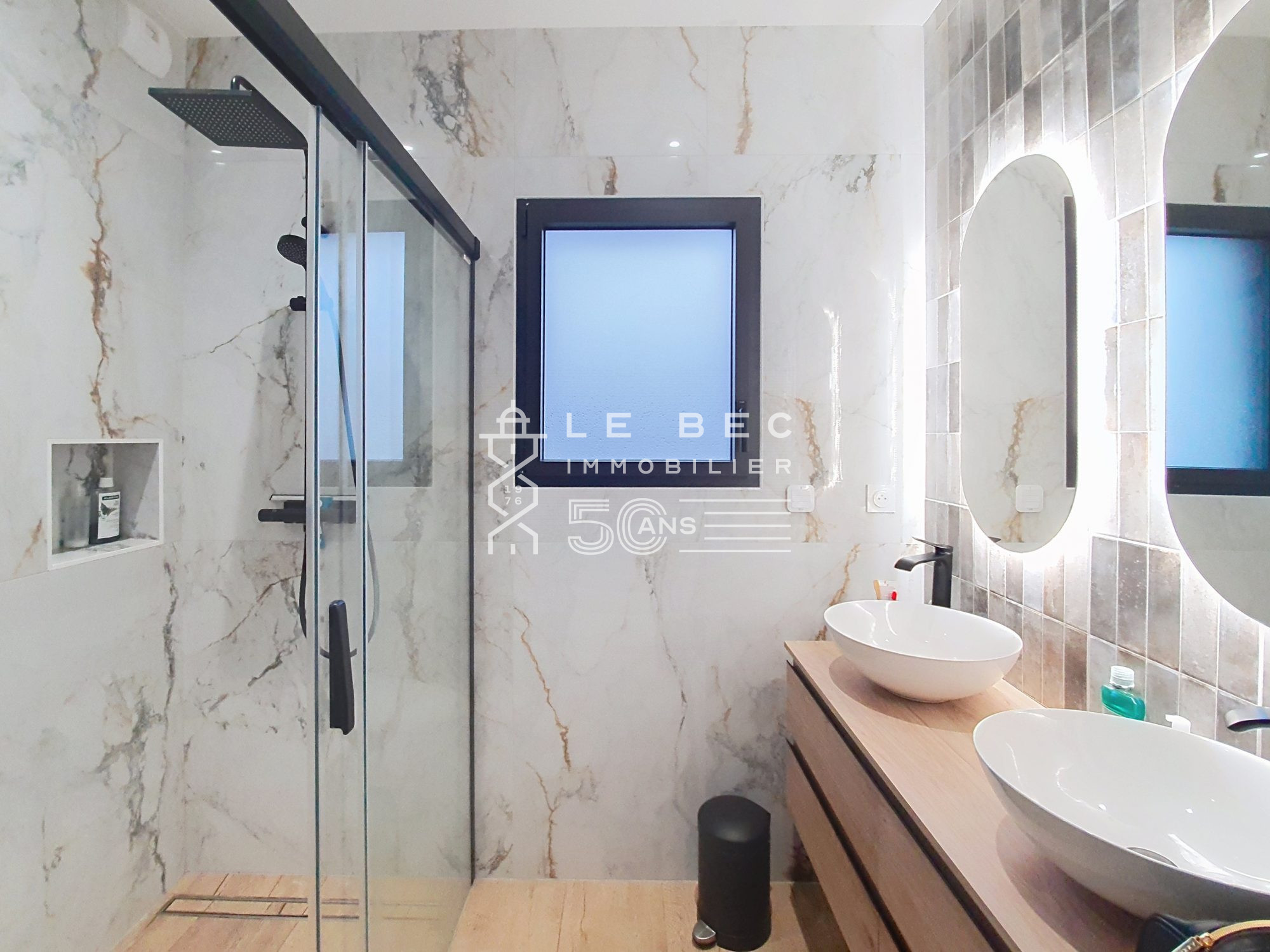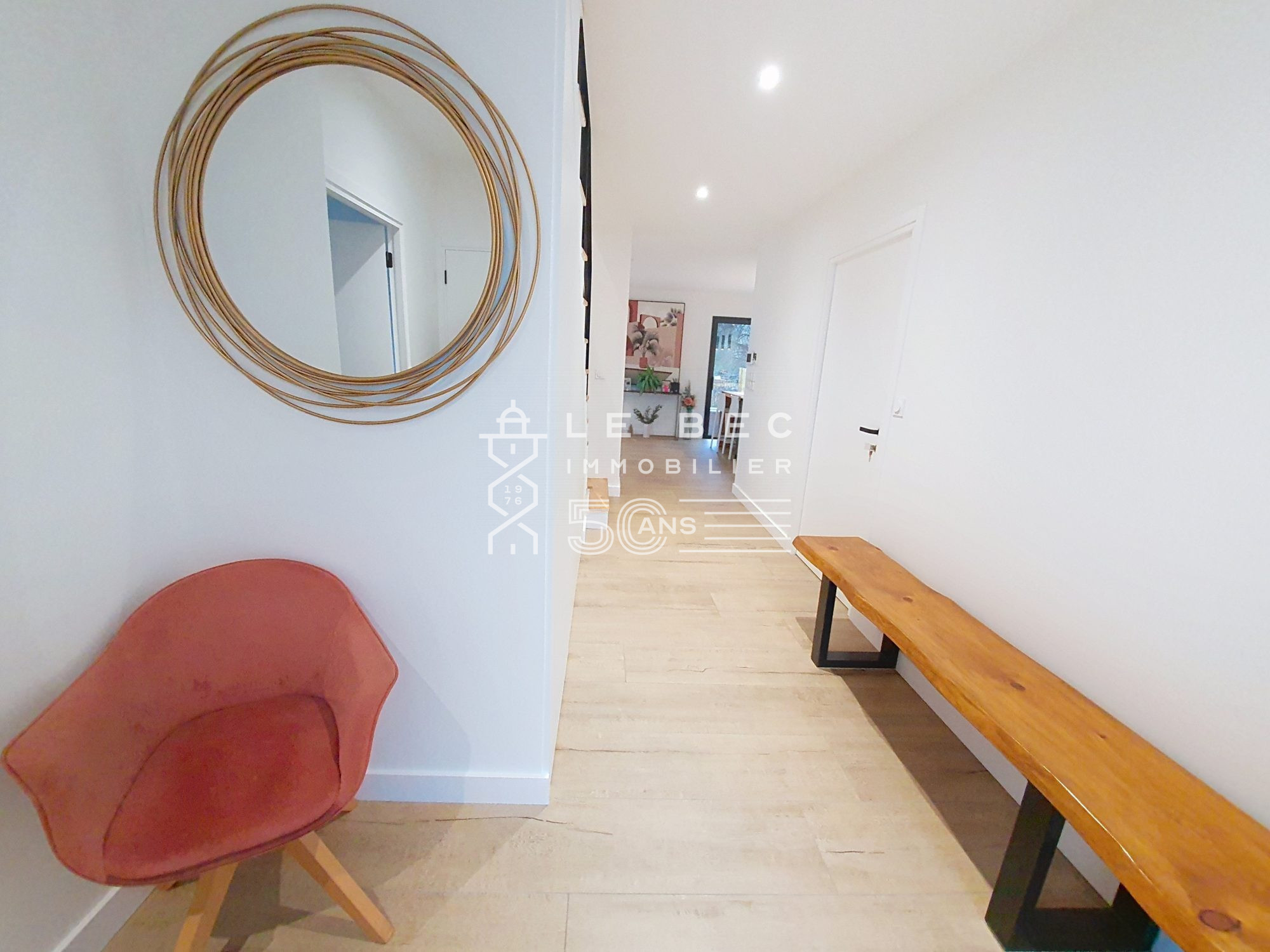 Elle se compose au rez-de-chaussée d'un beau séjour/salon de 33 m² exposé Sud-Est, une cuisine ouverte aménagée et équipée, une chambre et sa salle d'eau privative. À l'étage trois chambres, une salle de bains, wc, un bureau. Vous disposerez également d'un garage.