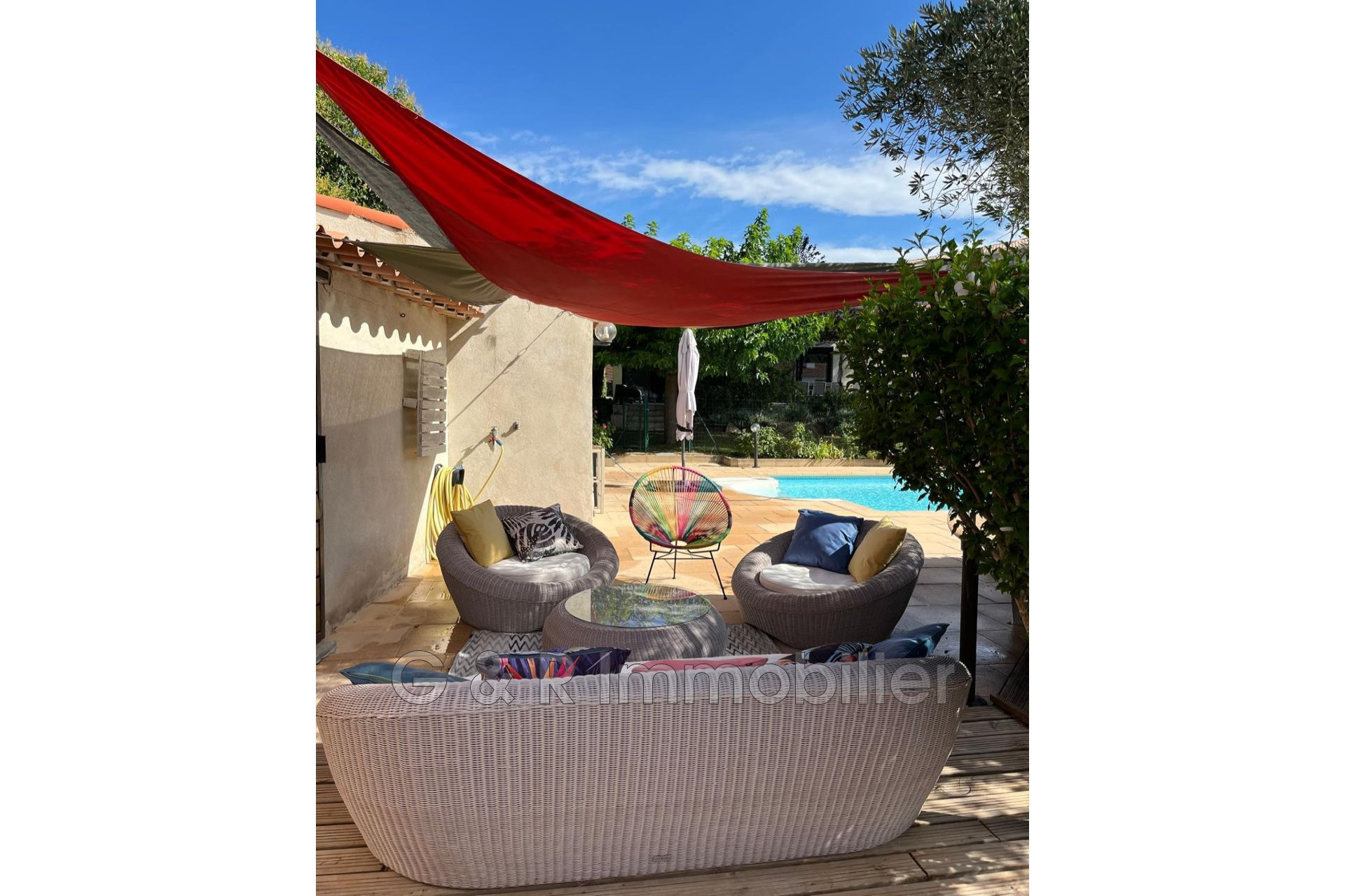 piscine, pool house, terrasses, jeu de boules, potager, forage.