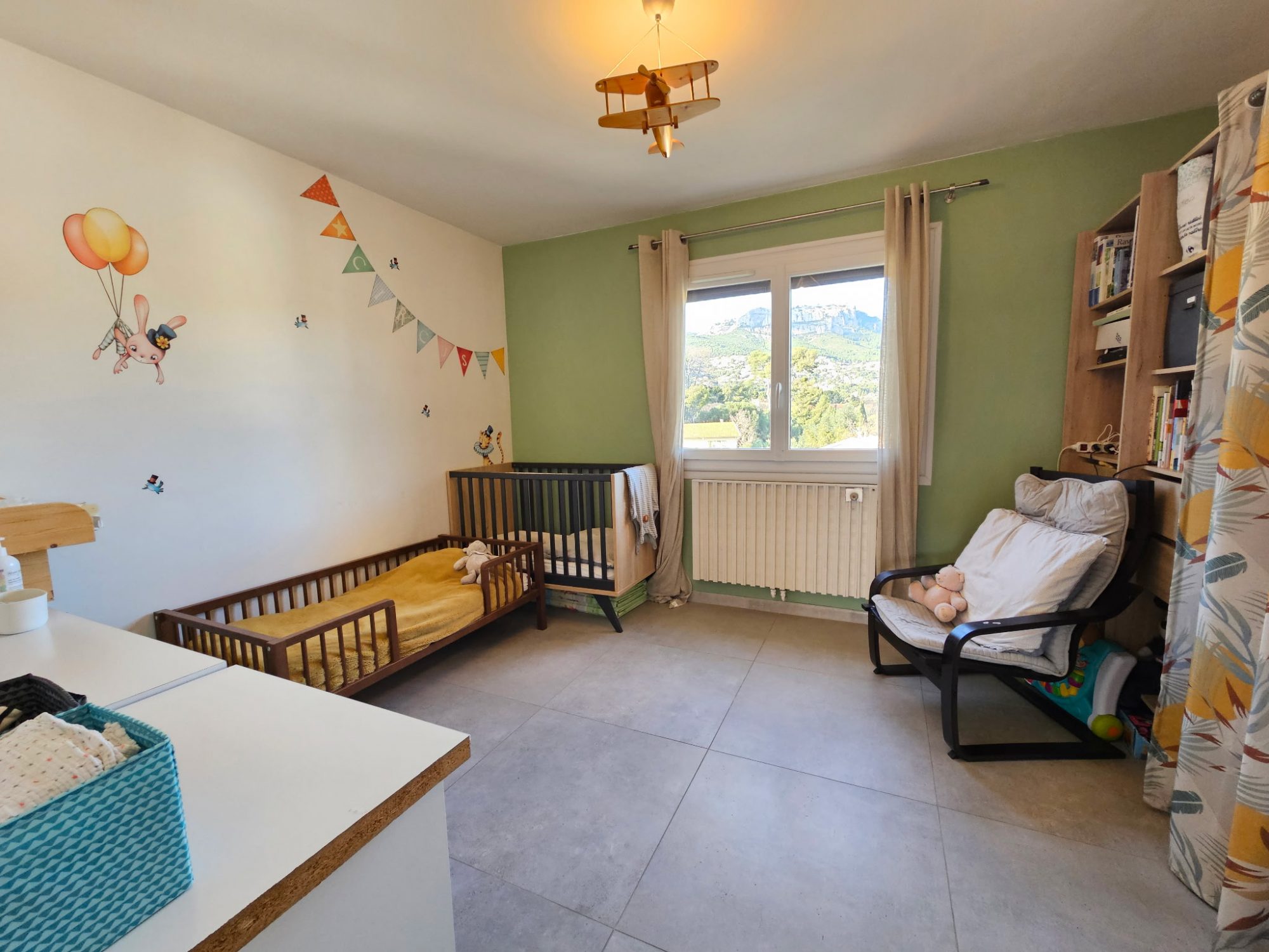 Inondé de lumière, il bénéficie de beaux espaces et d'une vue dégagée des deux cotés sur les montagnes et la verdure. Sa distribution en fait aussi un appartement facile à vivre au quotidien.
