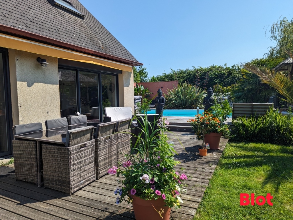 À l'extérieur, vous profiterez des beaux jours grâce à la piscine, à la terrasse et à la cuisine d'été, le tout dans un cadre verdoyant.