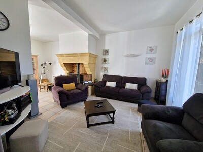 Côté maison: Une entrée spacieuse donnant accès au lumineux séjour/salon avec poêle à bois (d'env.43m²), d'une cuisine indépendante avec coin cellier donnant accès à une agréable véranda d'environ 22m² avec vue sur le jardin et la piscine ainsi qu'un wc séparé et d'une chambre. Sans oublier, le garage avec sa mezzanine pour le stockage d'environ 35m².