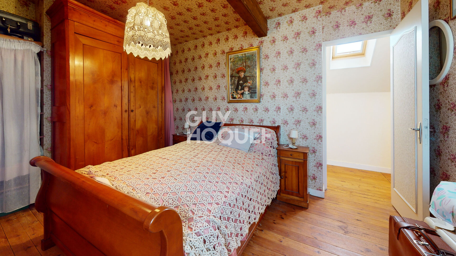 À l'étage, un couloir dessert trois chambres, une salle de bains avec WC ainsi qu'un grenier.