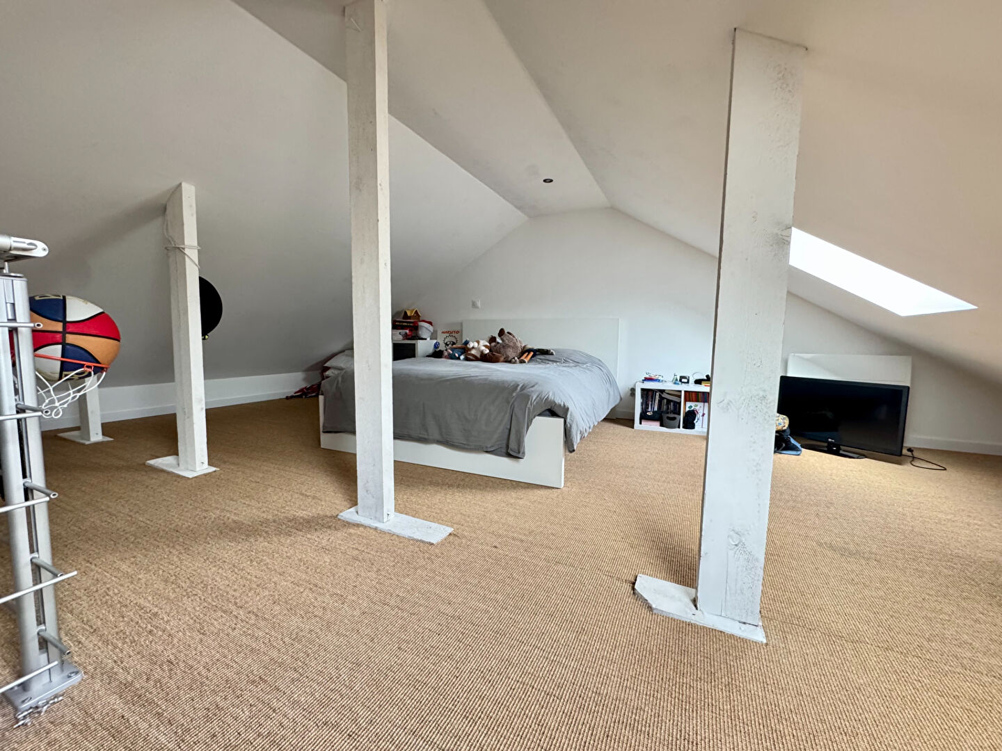 ? Une quatrième chambre sous mansarde, chaleureuse et pleine de charme, espace ado ou invités cocooning.