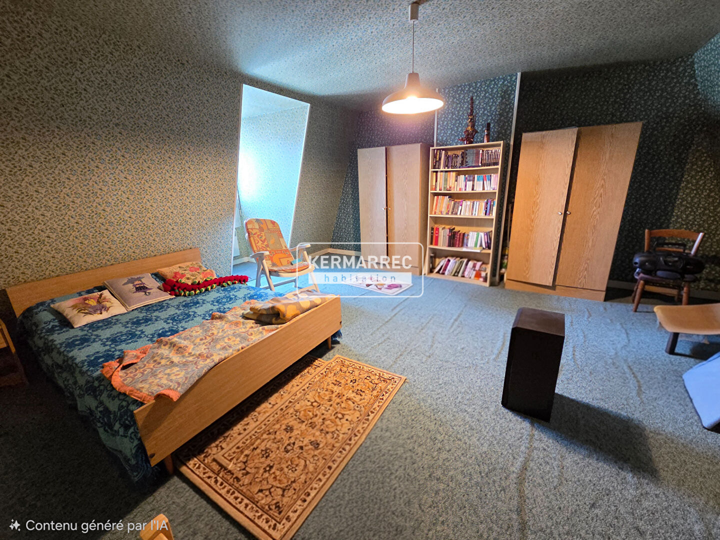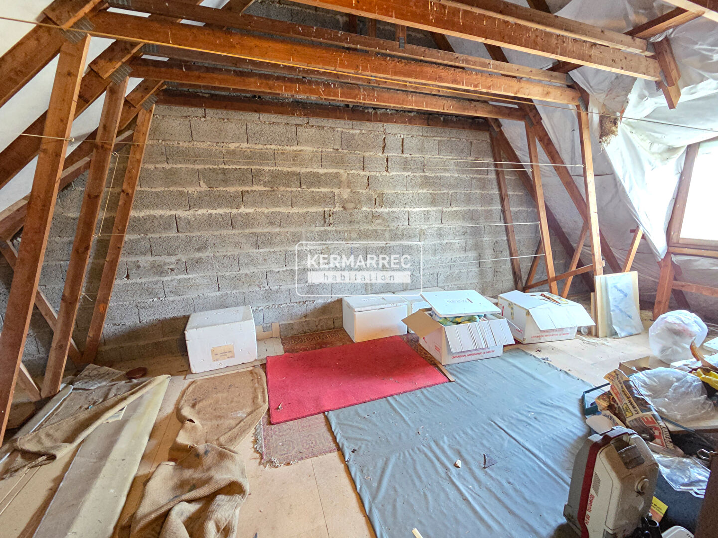 À l'étage, un palier dessert une spacieuse chambre d'environ 23 m² et un grenier de 22 m² offrant un beau potentiel d'aménagement selon vos besoins (chambre supplémentaire, bureau, salle de jeux ?).