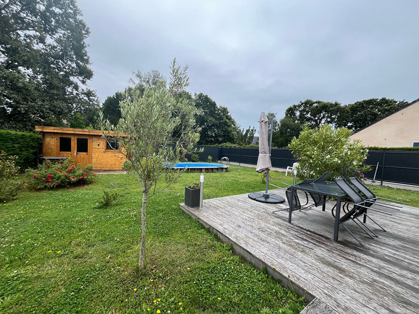 Un garage, une piscine semi-enterrée et un abri de jardin complètent ce bien.