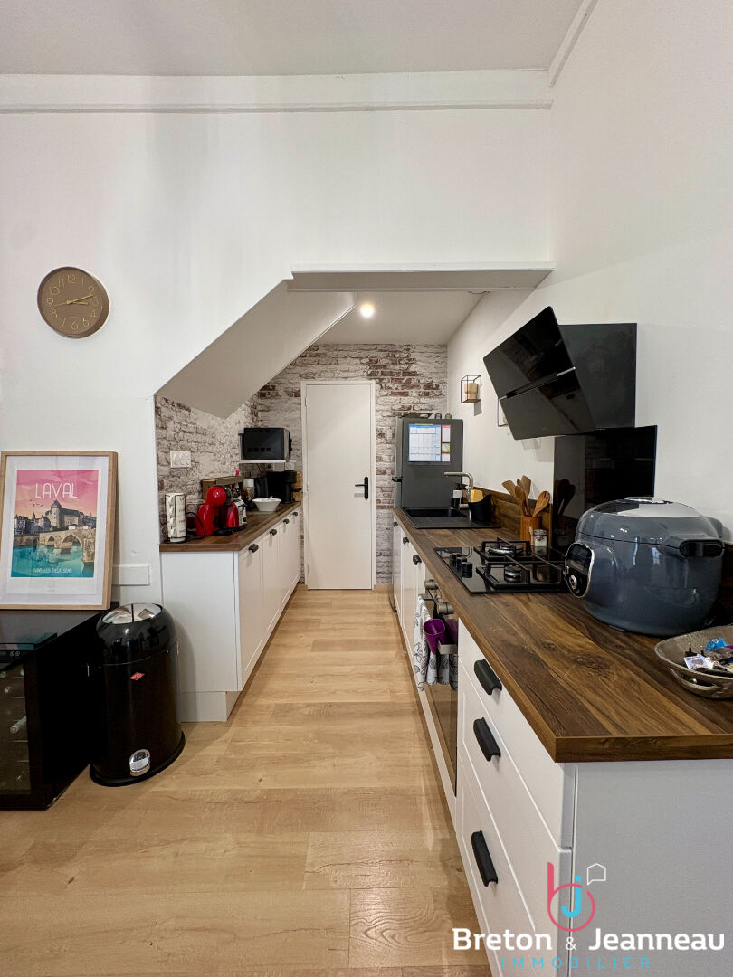 Maison de ville comprenant au rez-de-chaussée une cuisine aménagée et équipée (plaques à induction, hotte, four, lave-vaisselle, meubles bas), séjour, coin salon et WC.