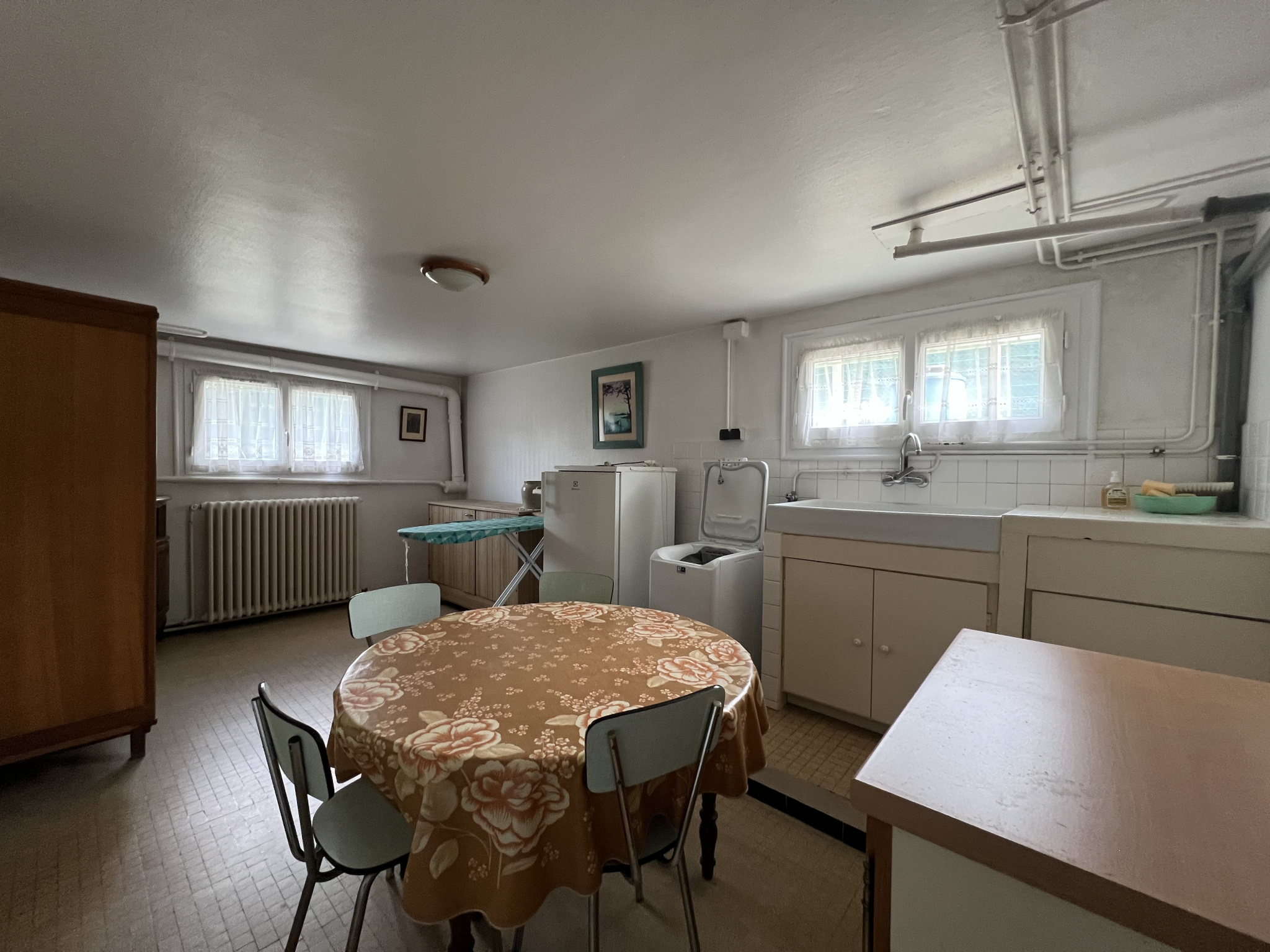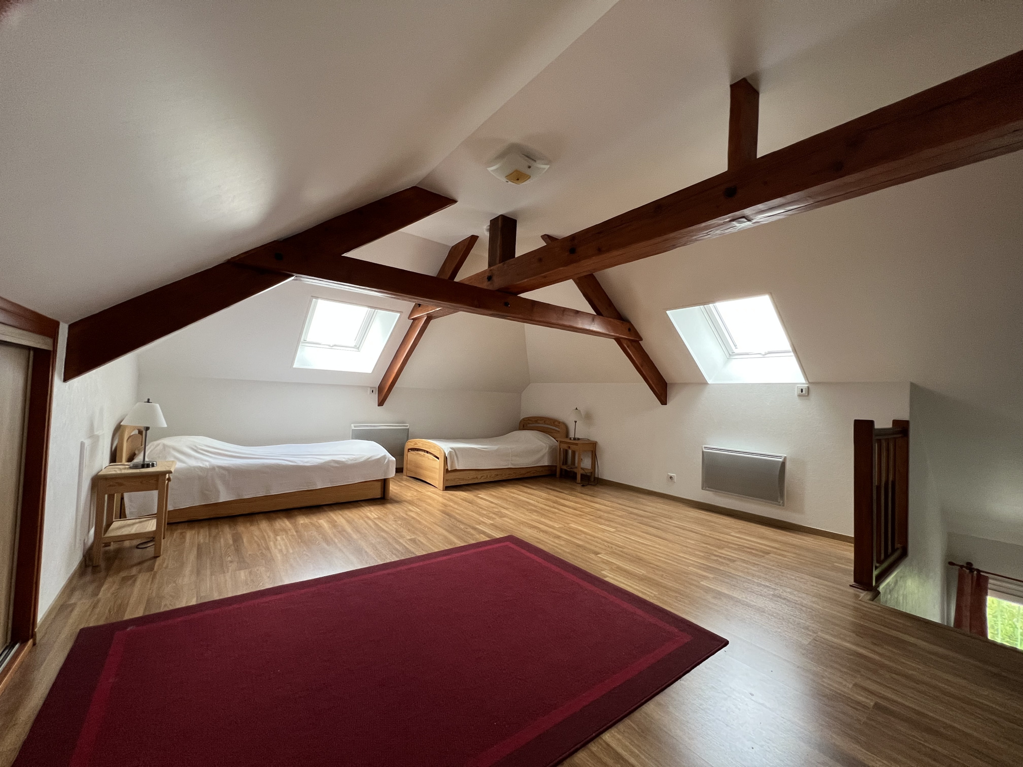 Il est composé d'une entrée avec dégagement et placards, une cuisine équipée et aménagée séparée, un salon séjour, une salle d'eau et trois chambres. A l'étage une chambre et une pièce.