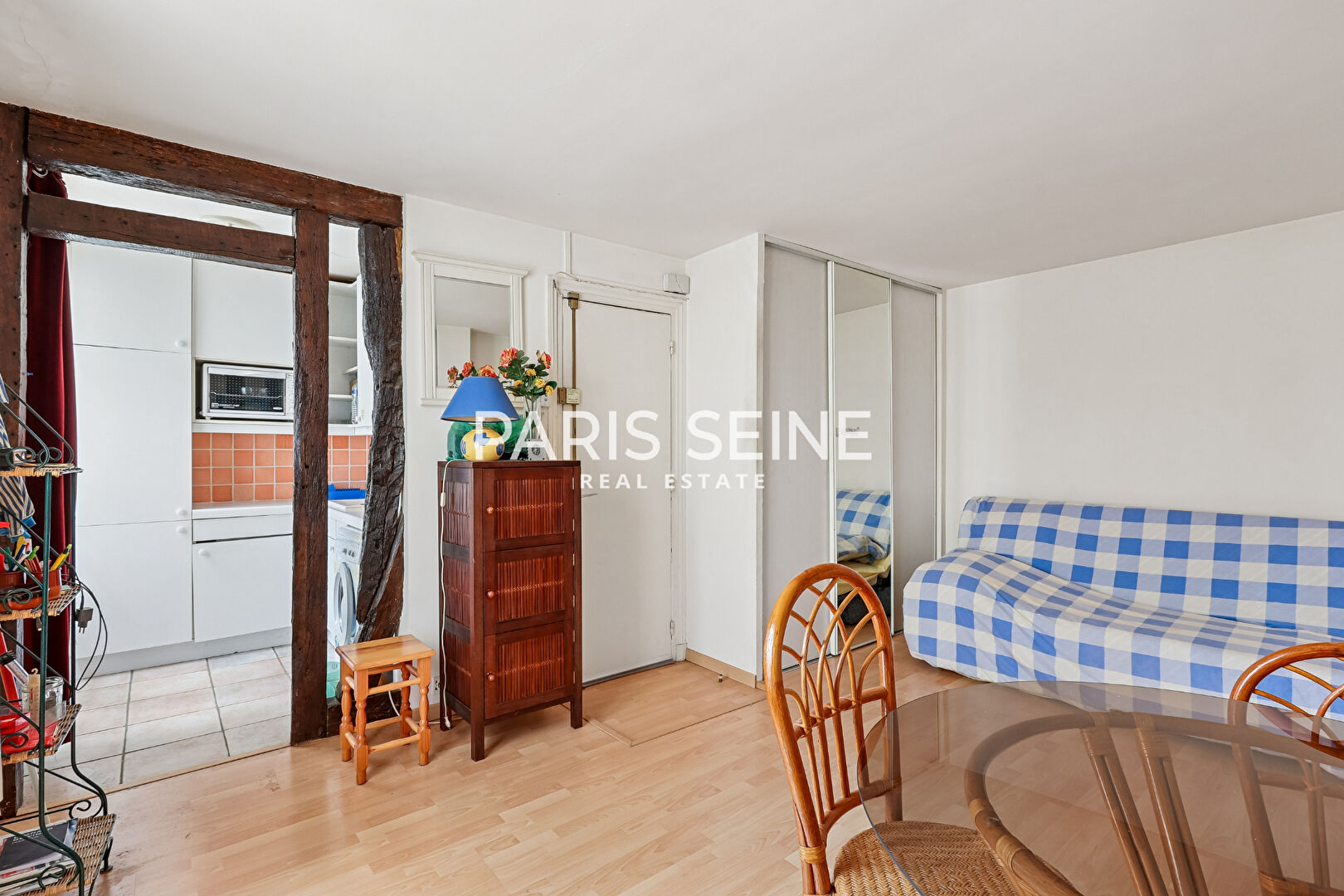 D'une superficie loi Carrez de 23,46 m2, il comprend : une pièce principale avec des rangements, une cuisine aménagée et une salle de bains avec un water-closet.