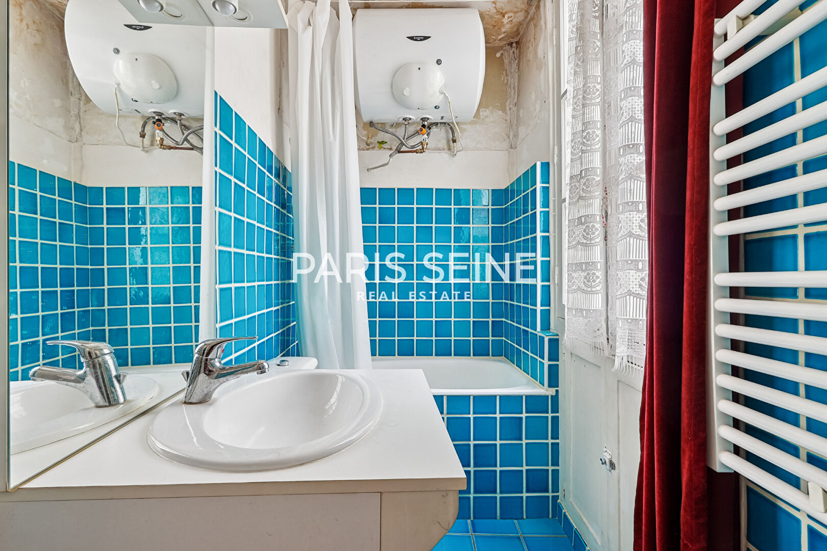 Entièrement sur la cour intérieure, il est au calme absolu, en plein coeur d'un quartier animé (proximité du Bon Marché).
