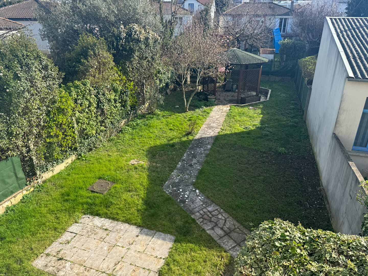 Jardin de plus de 100m² a acquérir en sus du prix ou par le biais de la copropriété par en avoir la jouissance partagée.