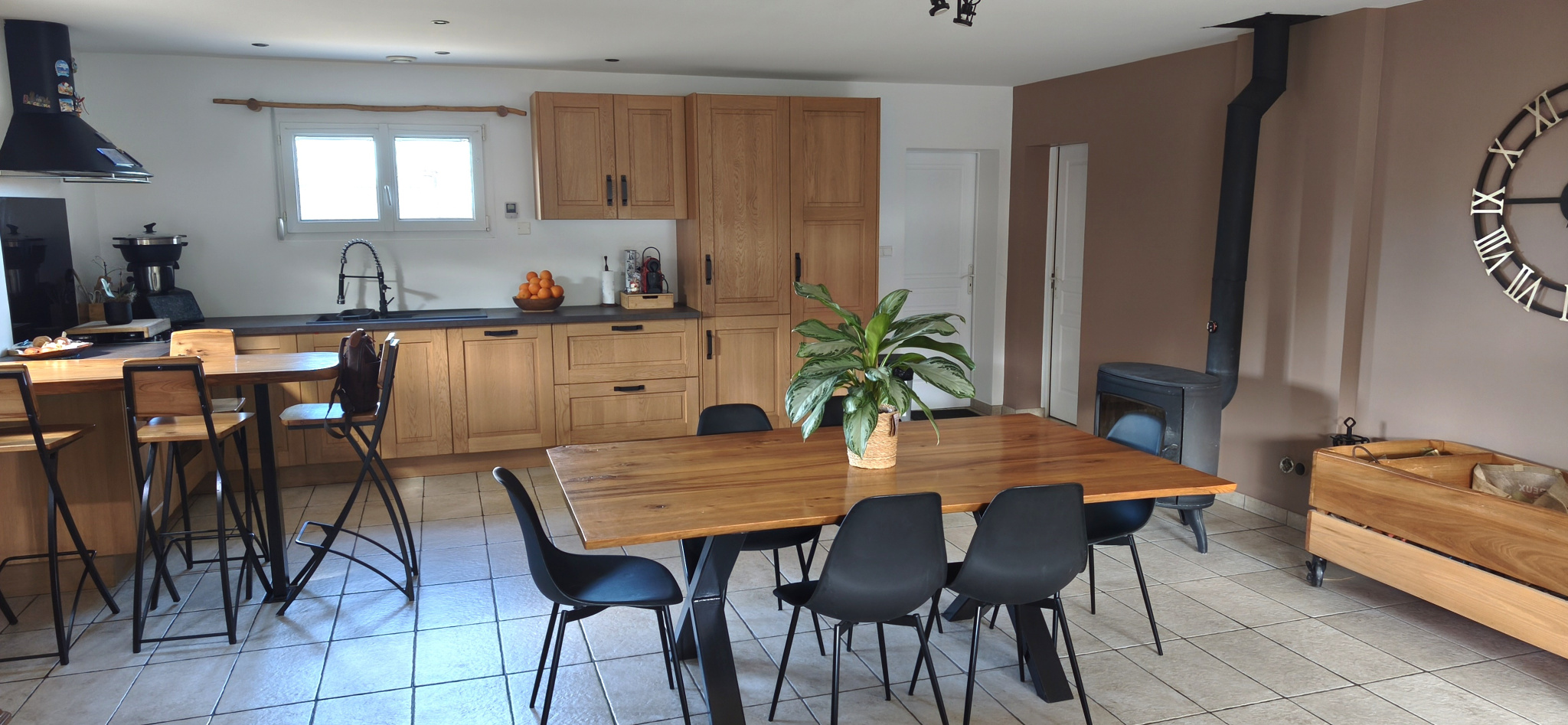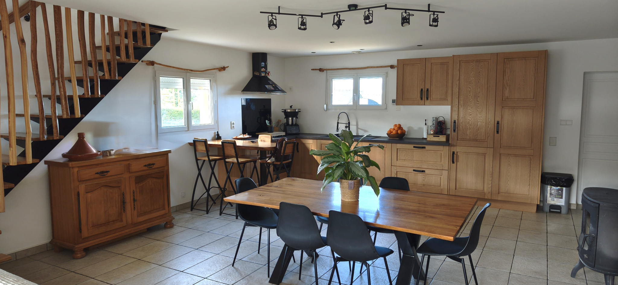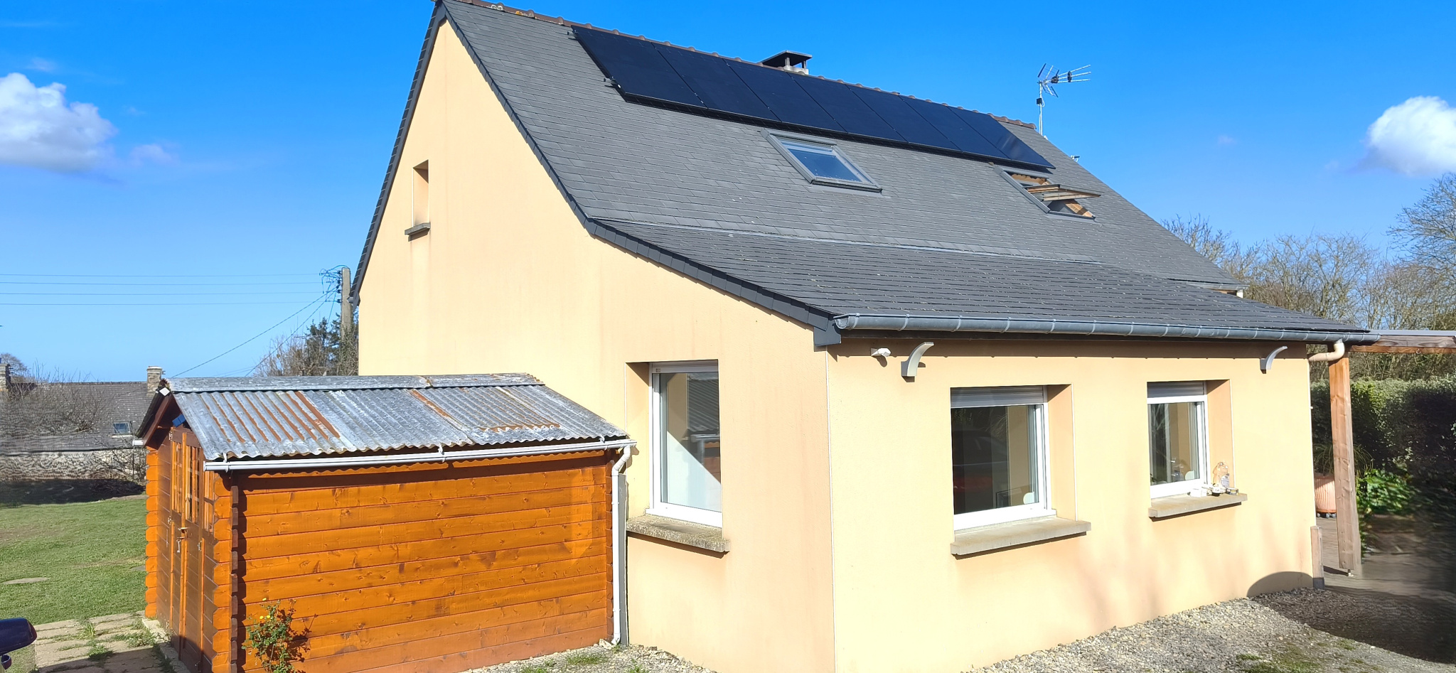 À vendre Maison de charme dans un hameau paisible proche de Beaussais-sur-Mer Dans un ravissant hameau d'une petite dizaine de maisons, au calme absolu et à quelques minutes du bourg comme de la mer, cette maison de 2005 offre un cadre de vie rare et recherché. Édifiée sur un terrain arboré et végétalisé de 2 200 m2, elle développe 110 m2 habitables. La pièce de vie, chaleureuse et lumineuse, accueille une cuisine américaine équipée ouverte sur le séjour, sublimé par un poêle à bois. Une grande pièce attenante fait office de buanderie et bureau. La suite parentale en rez-de-chaussée, avec salle d'eau privative, assure un confort de plain-pied. À l'étage, deux chambres, une salle d'eau et un WC complètent l'ensemble. Panneaux solaires installés en 2025, deux grands garages (40 m2) et un vaste carport idéal pour camping-car viennent parfaire ce bien. Idéale pour l'habitation principale ou secondaire. Un lieu serein, entre nature et littoral, proposé à 359 900 EUR FAI.