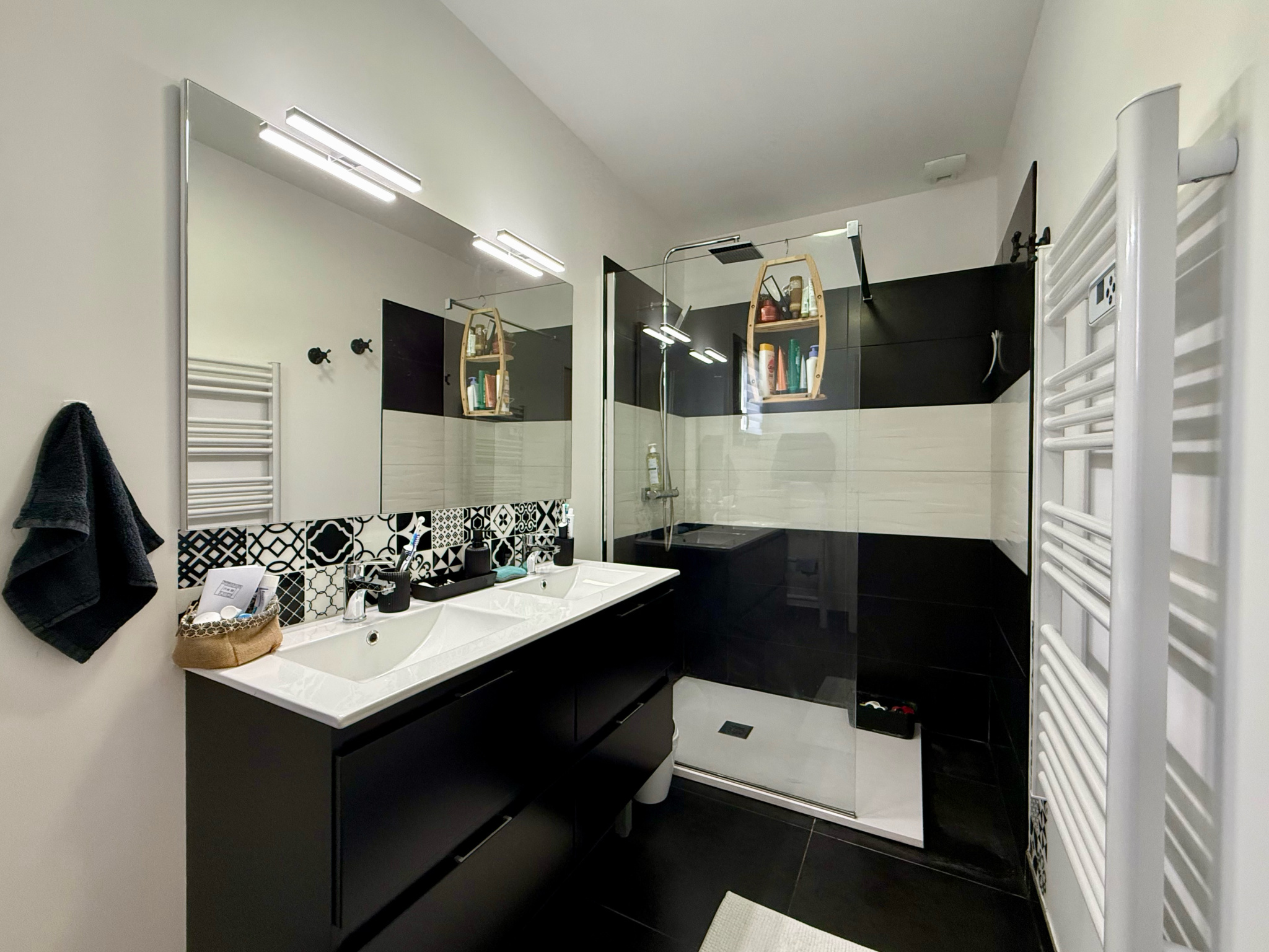 L'agencement, particulièrement fonctionnel, comprend une véritable suite parentale, deux chambres supplémentaires avec salle de bains indépendante ainsi qu'un bureau, idéal pour le télétravail ou un espace polyvalent.