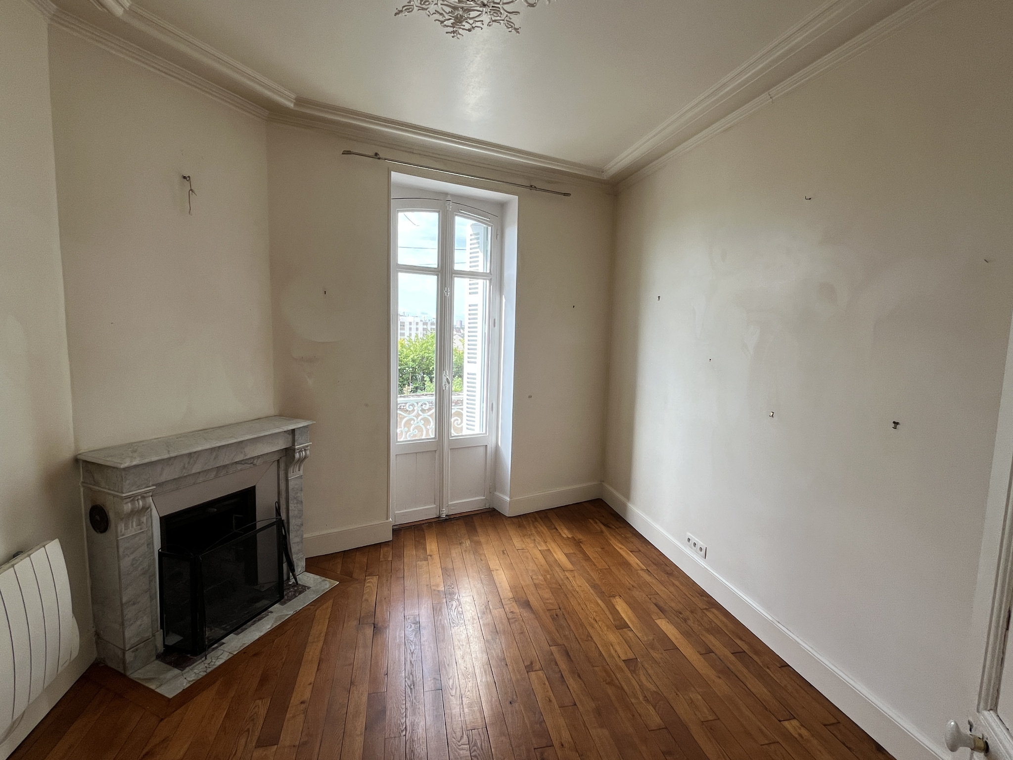 Salon parquet avec cheminée et belle hauteur sous plafond exposé SUD,
