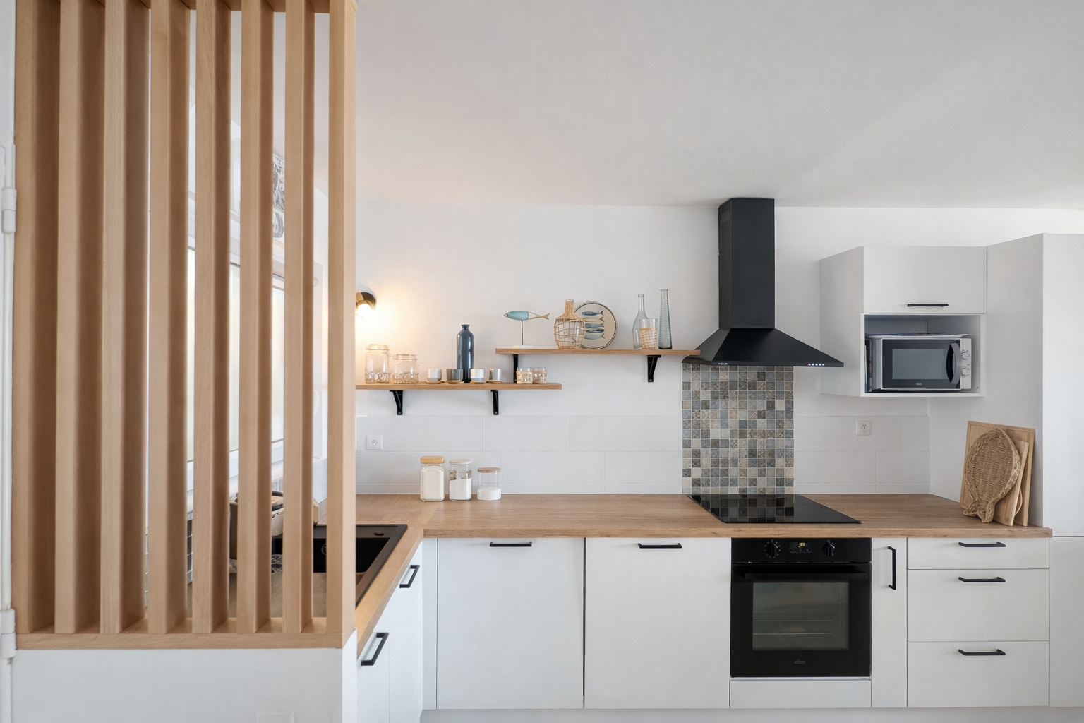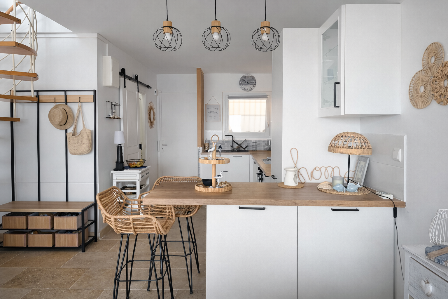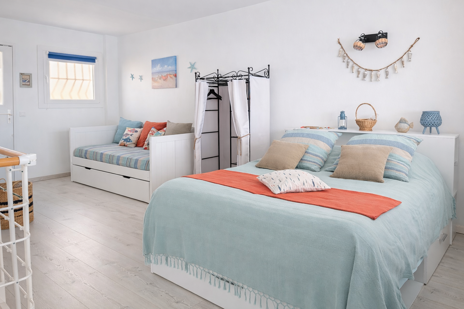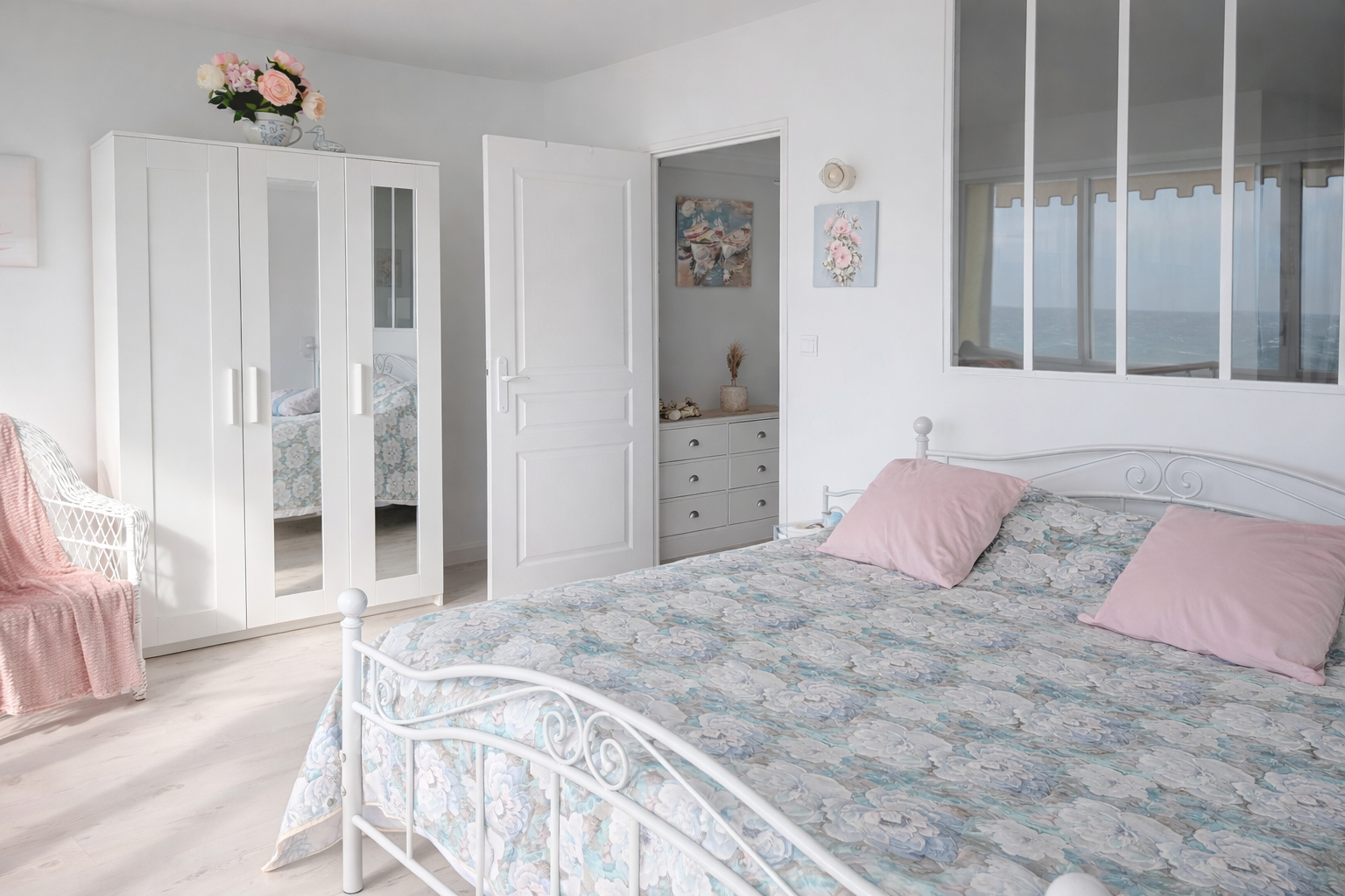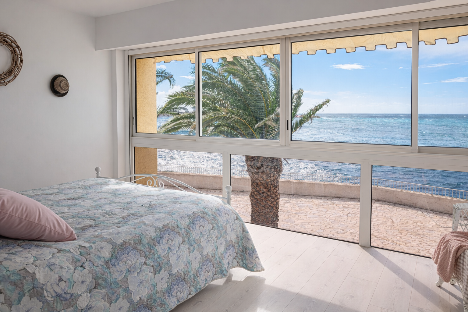L'appartement offre un espace de vie lumineux ouvert sur l'extérieur, dans une atmosphère élégante inspirée de l'esprit « beach house », avec la mer comme horizon permanent. À l'étage, deux chambres aux volumes généreux composent l'espace nuit, dont une chambre principale de plus de 15 m2 offrant une sensation unique « comme sur un yacht » face à la mer, ainsi qu'une seconde chambre familiale de plus de 20 m2. Deux salles d'eau et deux WC complètent l'ensemble avec un confort appréciable.