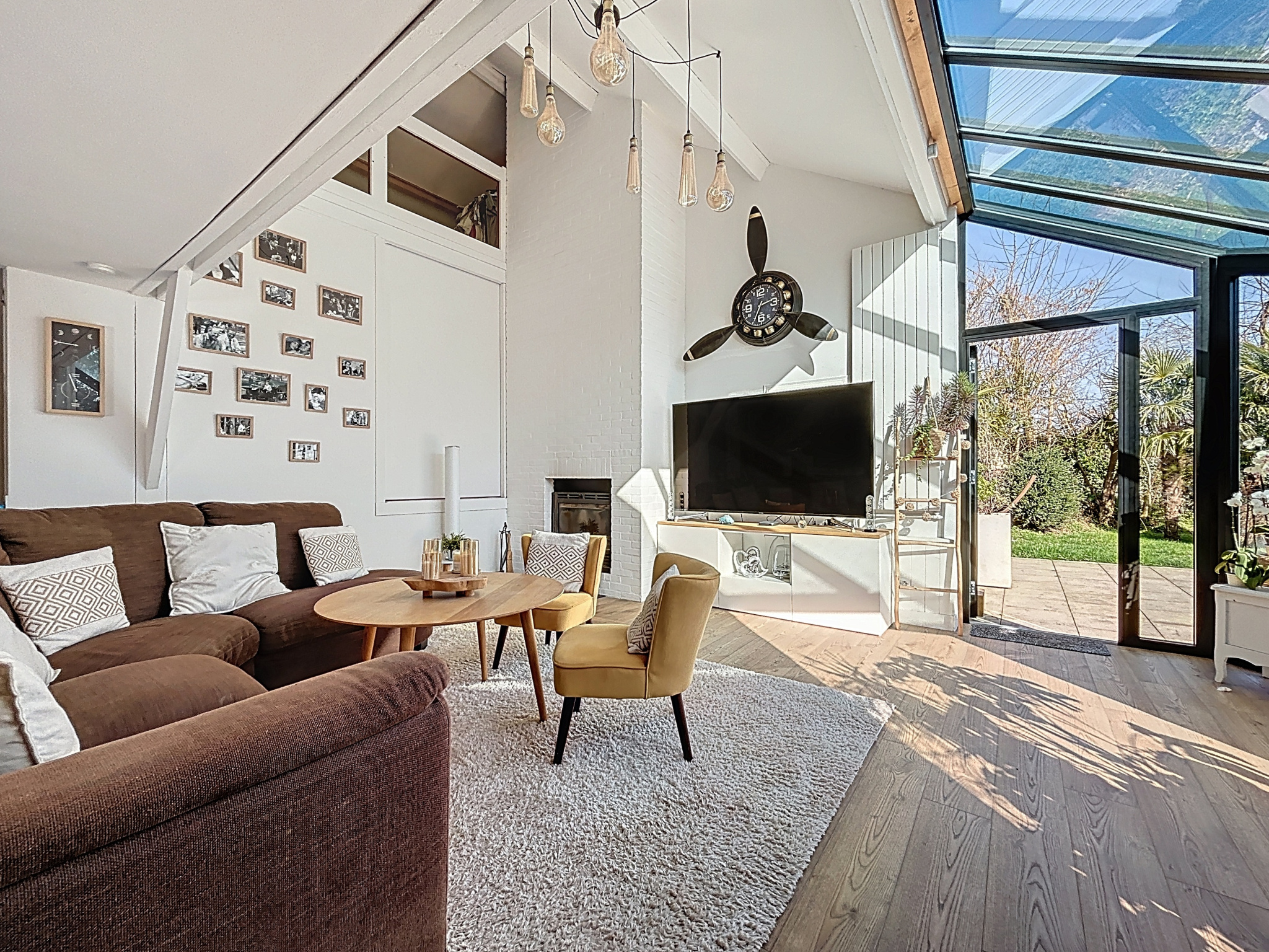 Dès l'entrée, la pièce de vie lumineuse invite à la convivialité, avec une cuisine aménagée et équipée ouverte sur le séjour - salon agrémenté d'un insert à bois, ainsi qu'une pièce de vie supplémentaire d'environ 30m2 ajoutée par un agrandissement de 2024. Celle-ci faisant office de pièce de vie supplémentaire avec accès à une grande terrasse exposée SUD, idéale pour se détendre, recevoir des invités et profiter de la piscine !