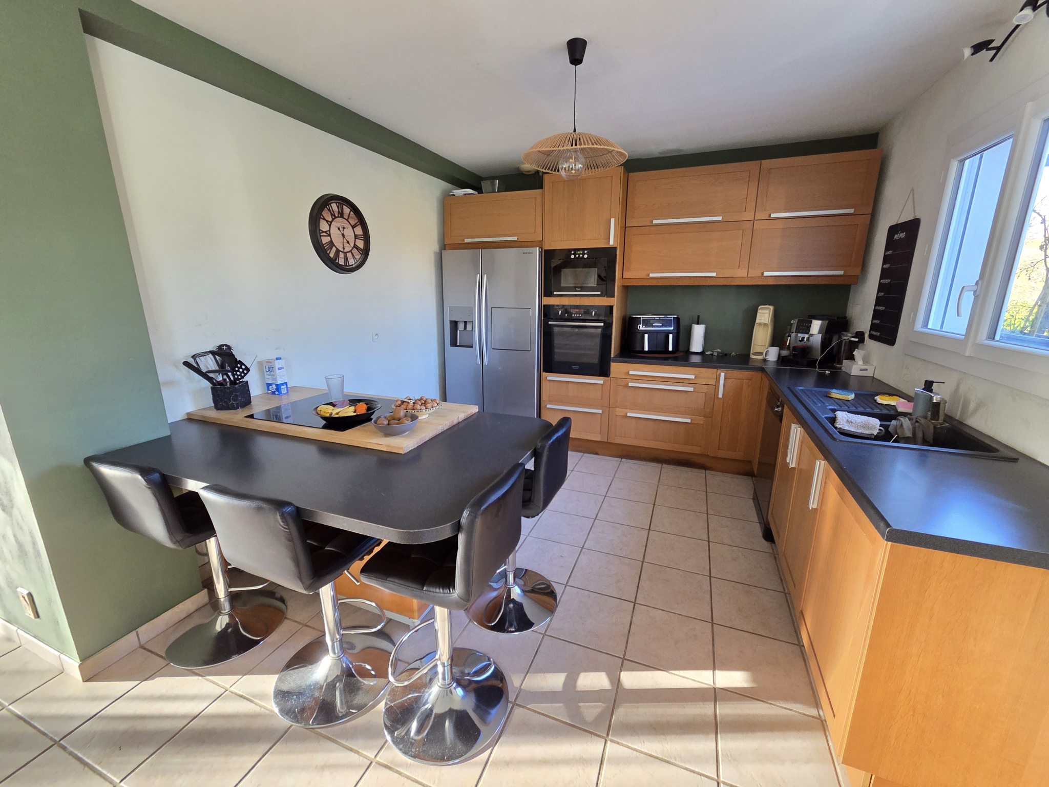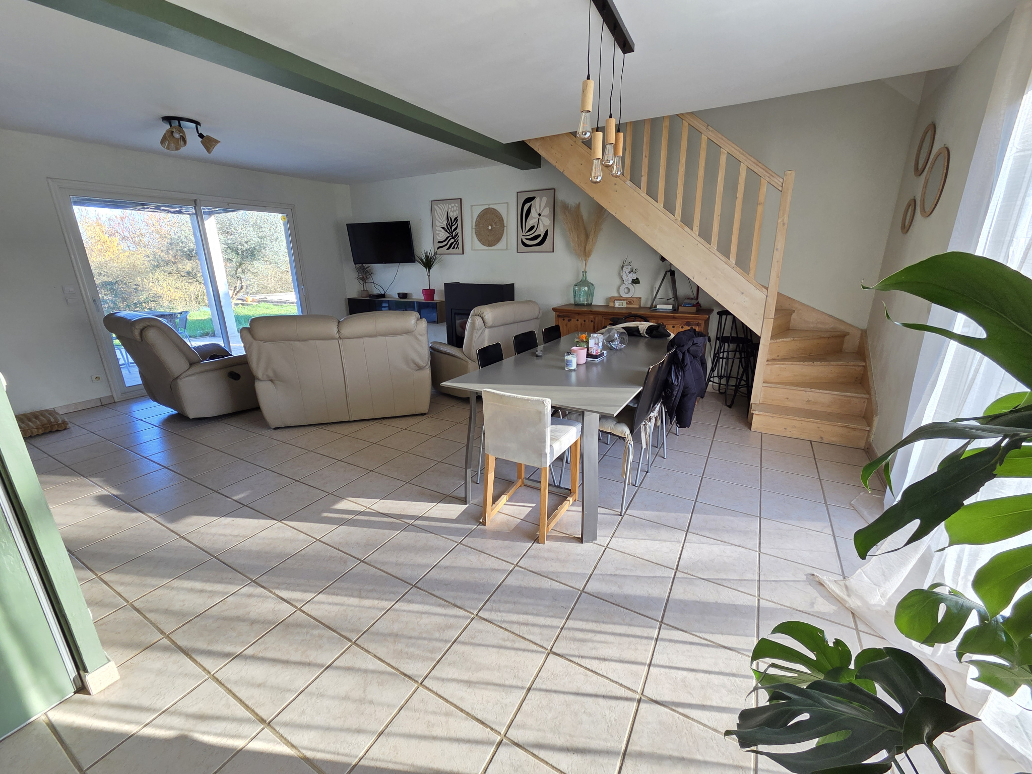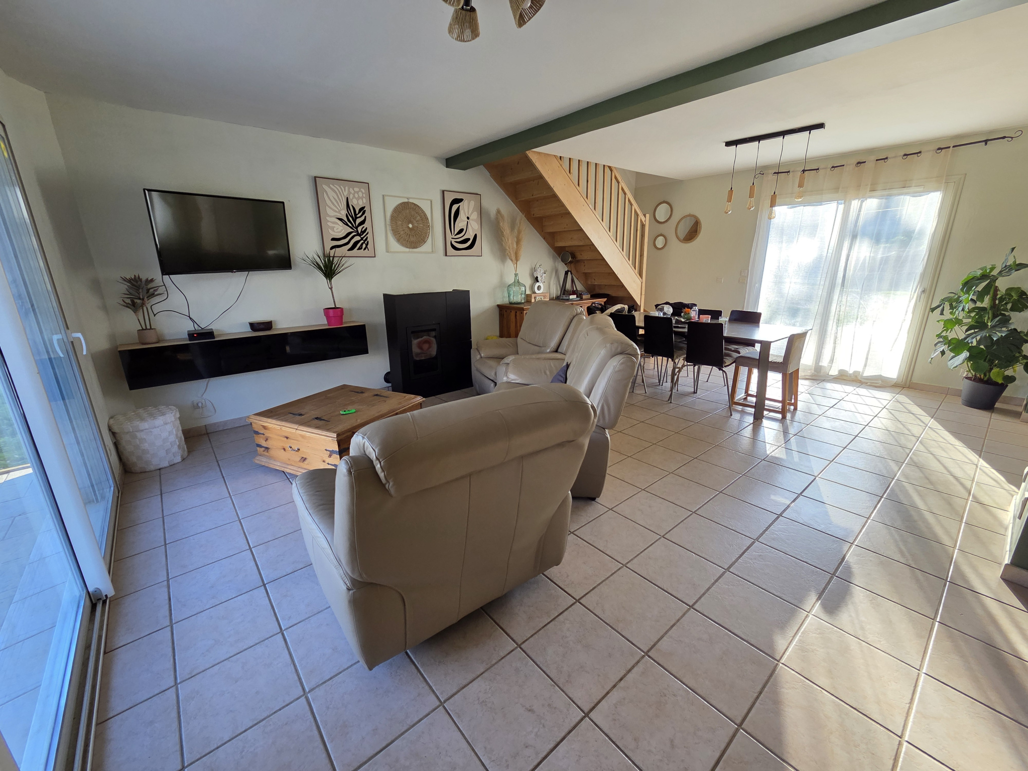 La villa vous offre un grand hall d'entrée, une vaste pièce à vivre de 46 m2, baignée de lumière, avec une cuisine équipée ouverte sur la salle de séjour donnant sur la terrasse. Elle comprend également 4 CHAMBRES, dont une au rez-de-chaussée, une salle de bains, une salle d'eau et 2 WC. Garage attenant et communiquant. Chauffage par poêle à granulés.