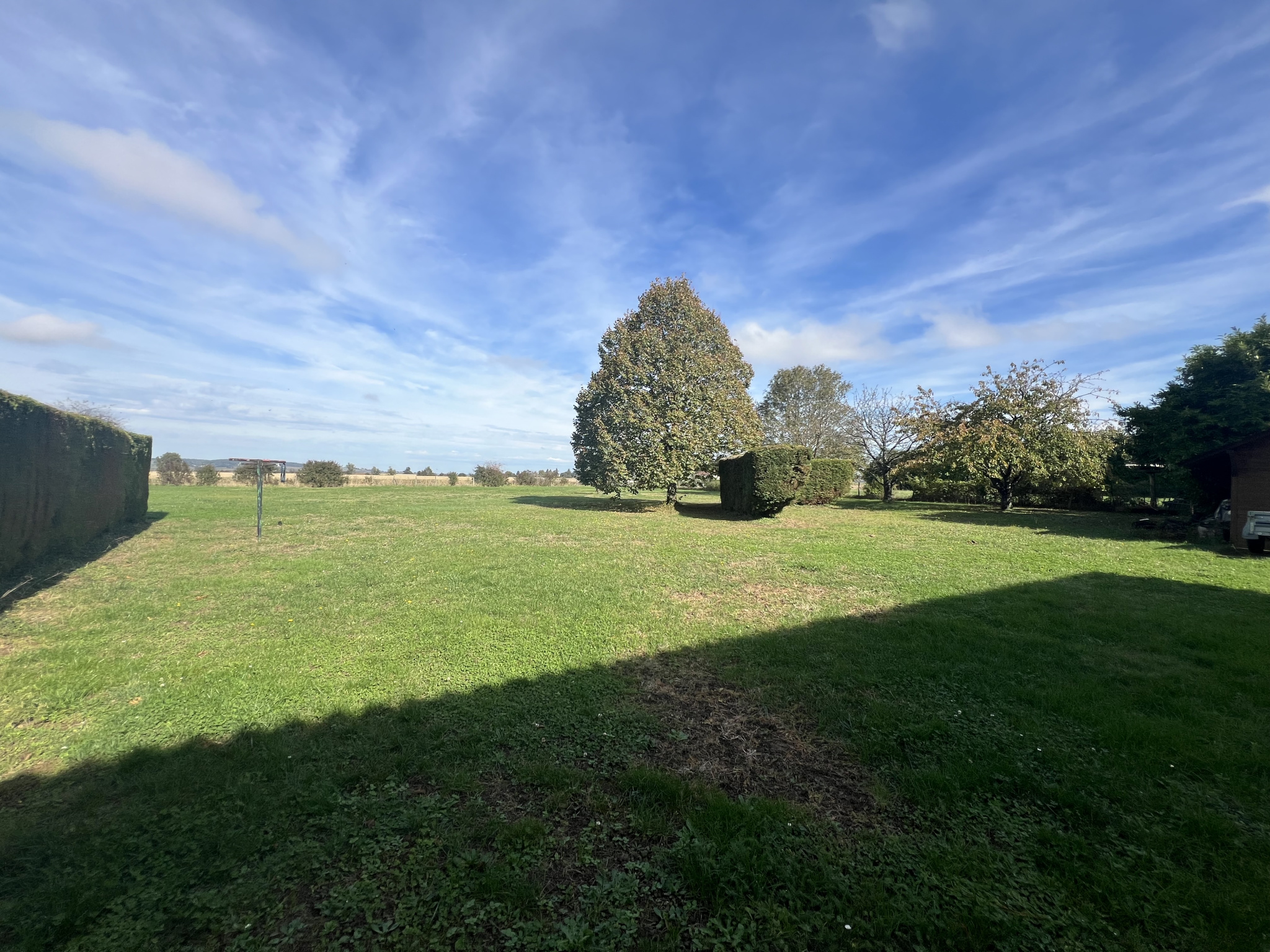 L'ensemble est implanté sur un terrain plat d'environ 2 000 m2, non constructible, en bordure de champs, garantissant un cadre verdoyant et dégagé.