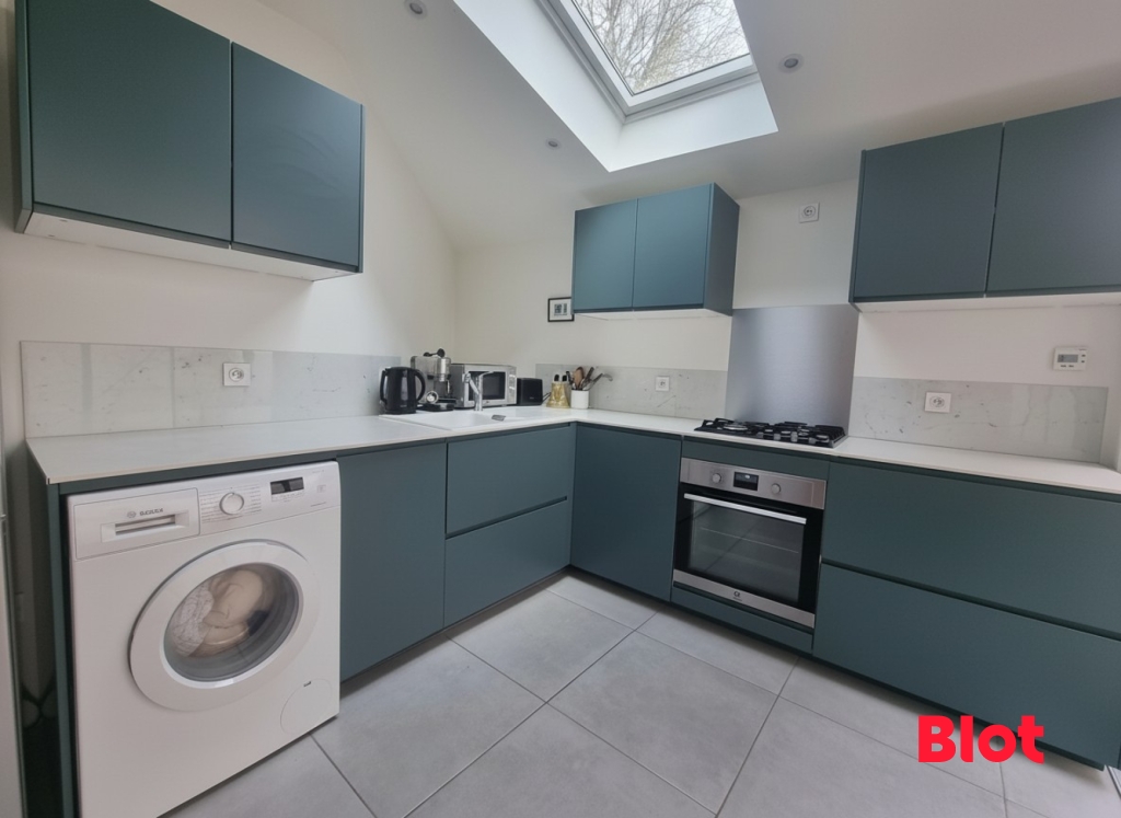 La cuisine récente, ouverte, aménagée et entièrement équipée, prolonge harmonieusement l'espace et donne accès à un agréable patio avec terrasse, parfait pour profiter des beaux jours en toute intimité. Un WC séparé complète ce niveau.
