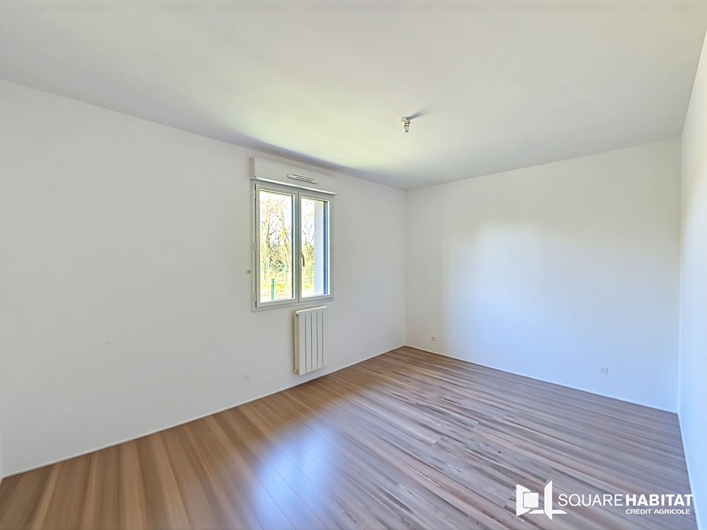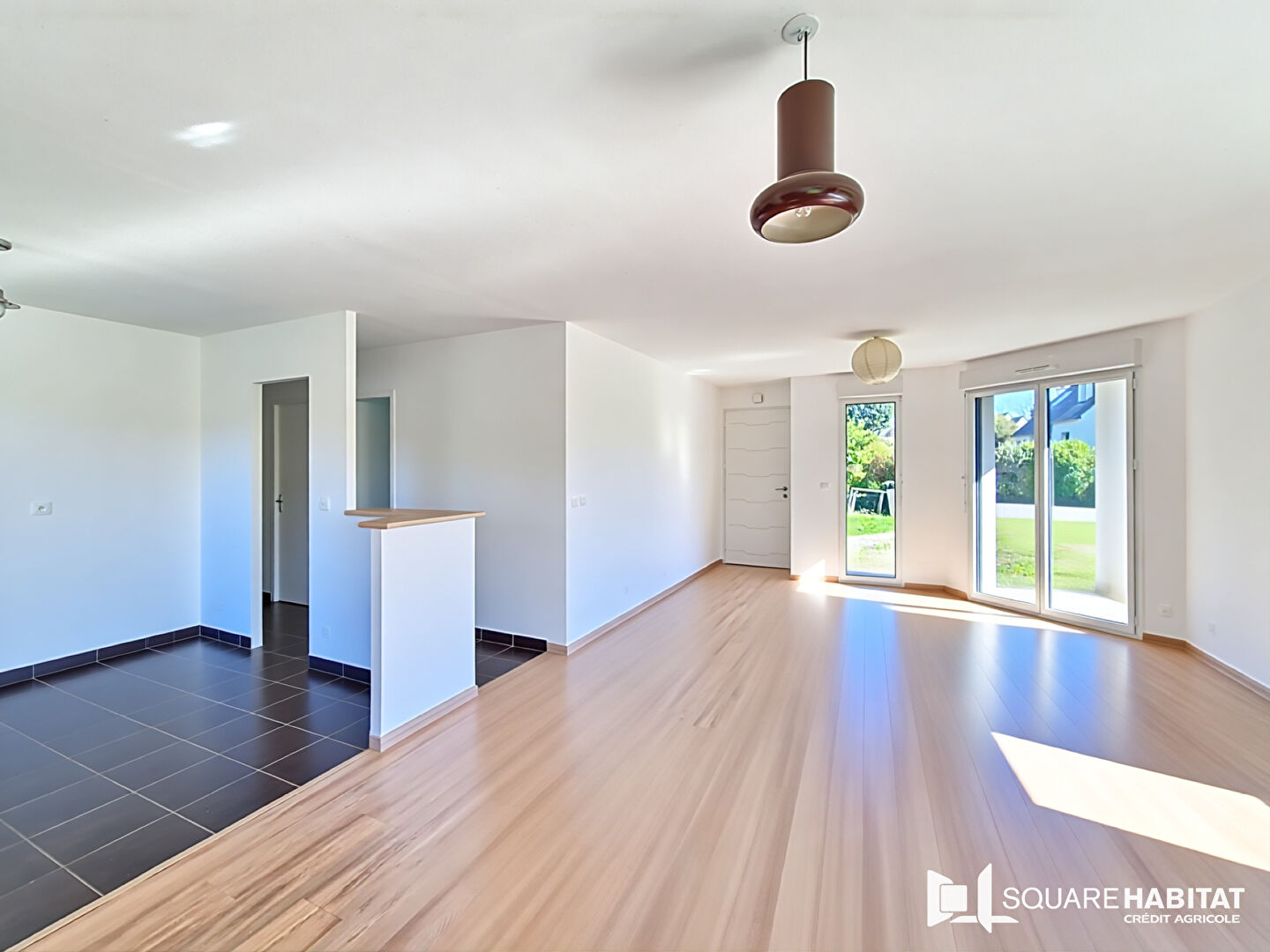 Fonctionnelle et lumineuse, elle se compose d'un bel espace de vie agrémenté d'un poêle à pellets, d'une cuisine ouverte, de trois chambres, d'une salle de douches et de WC séparés.