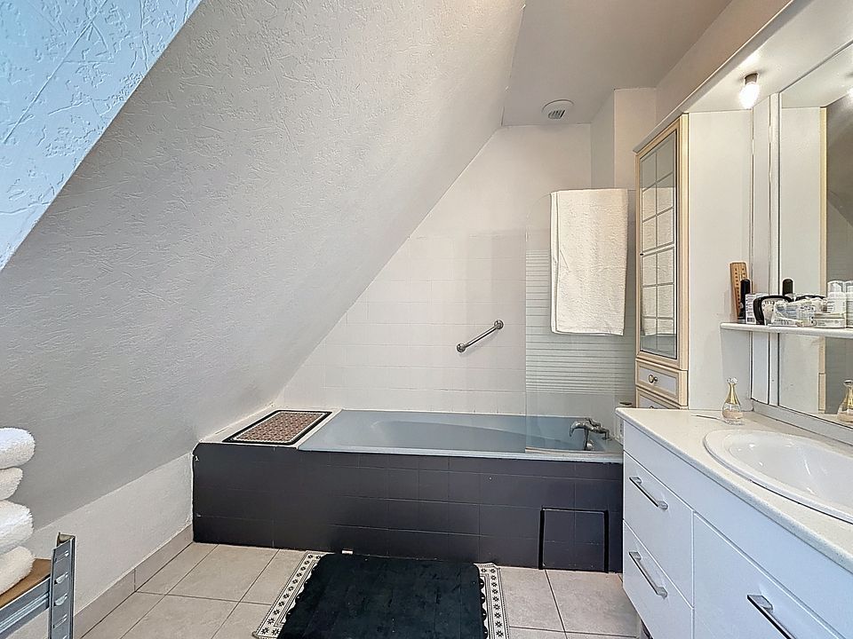 Un garage avec grenier vient compléter ce bien, apportant un espace de stationnement et de rangement supplémentaire.