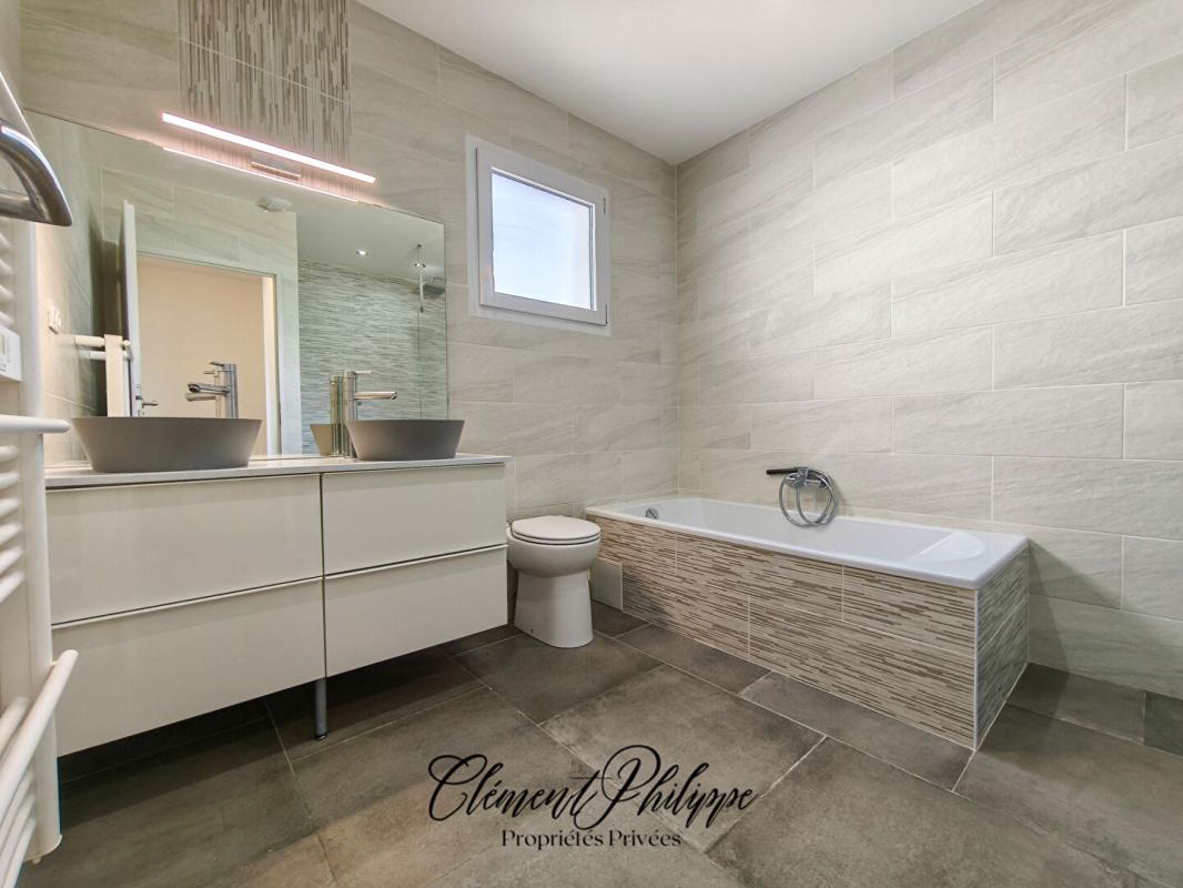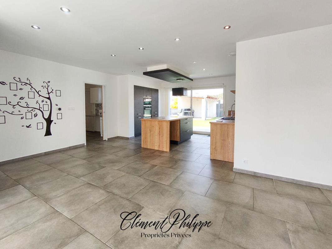 Villa contemporaine 2021 de 120 m² sur 600 m² : séjour lumineux avec cuisine ouverte aménagée équipée, cellier/buanderie, garage avec rochelle de rangement. 4 chambres avec placards dont suite parentale avec salle d'eau privative, salle de bains avec WC, WC suspendu indépendant.