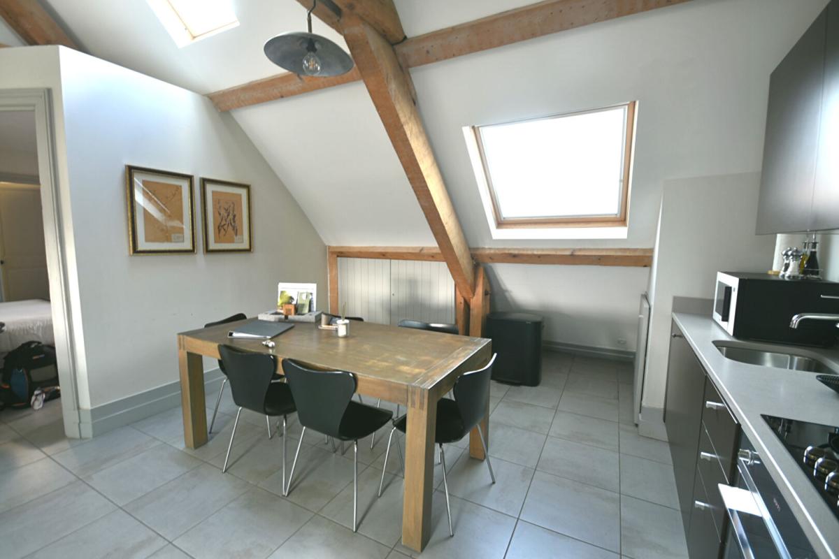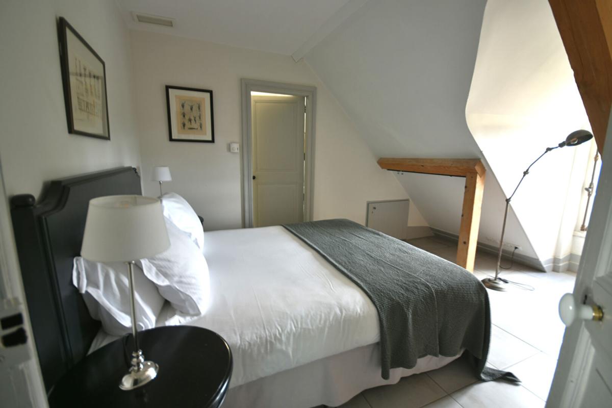 Cet appartement de 2 chambres et 2 salles de bain offre un espace de vie confortable avec un salon et une cuisine à aire ouverte. Situé au 3e étage du château principal, cet appartement allie charme historique et confort moderne.