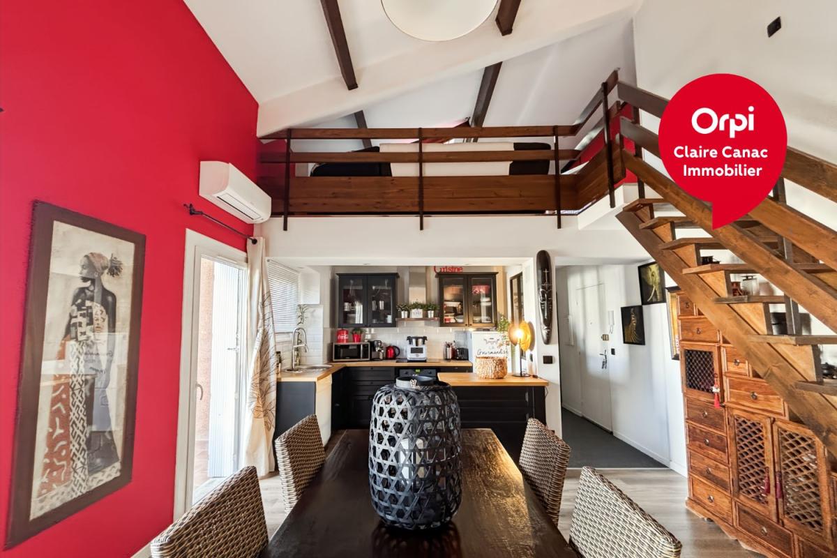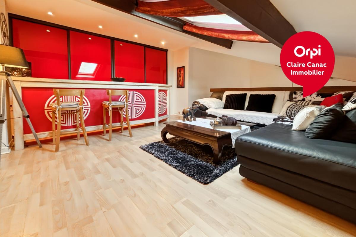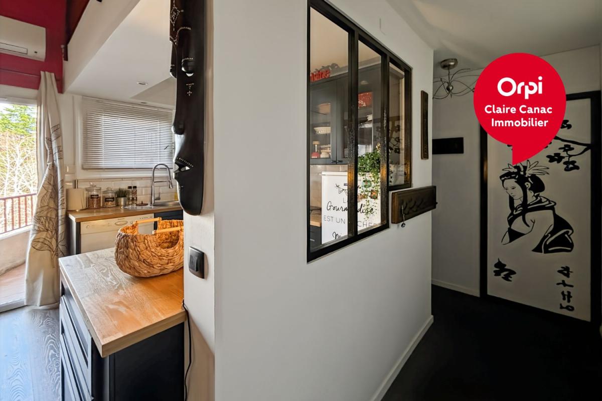 Dès l'entrée, le coup de coeur est immédiat. Le séjour impressionne par sa superbe hauteur sous plafond et ses poutres apparentes, qui apportent volume, luminosité et une vraie personnalité au lieu. L'ensemble dégage une atmosphère chaleureuse et actuelle, avec une décoration soignée. Un joli balcon complète le tout, idéal pour profiter d'un extérieur en toute tranquillité.