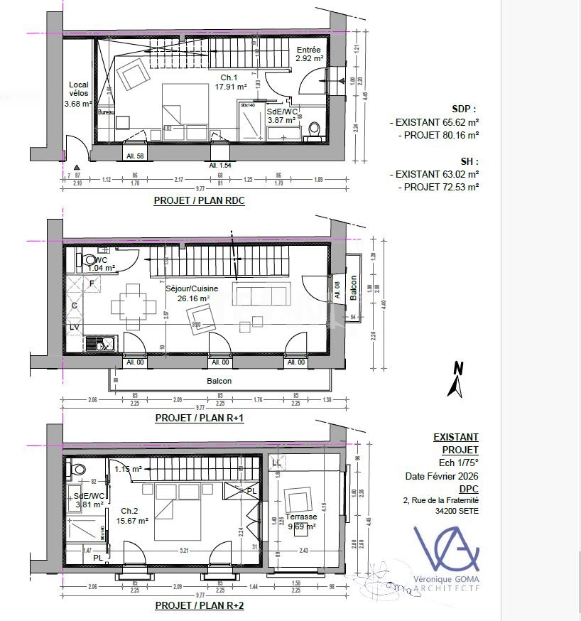 Un projet réalisé par architecte avec permis en cours prévoit :