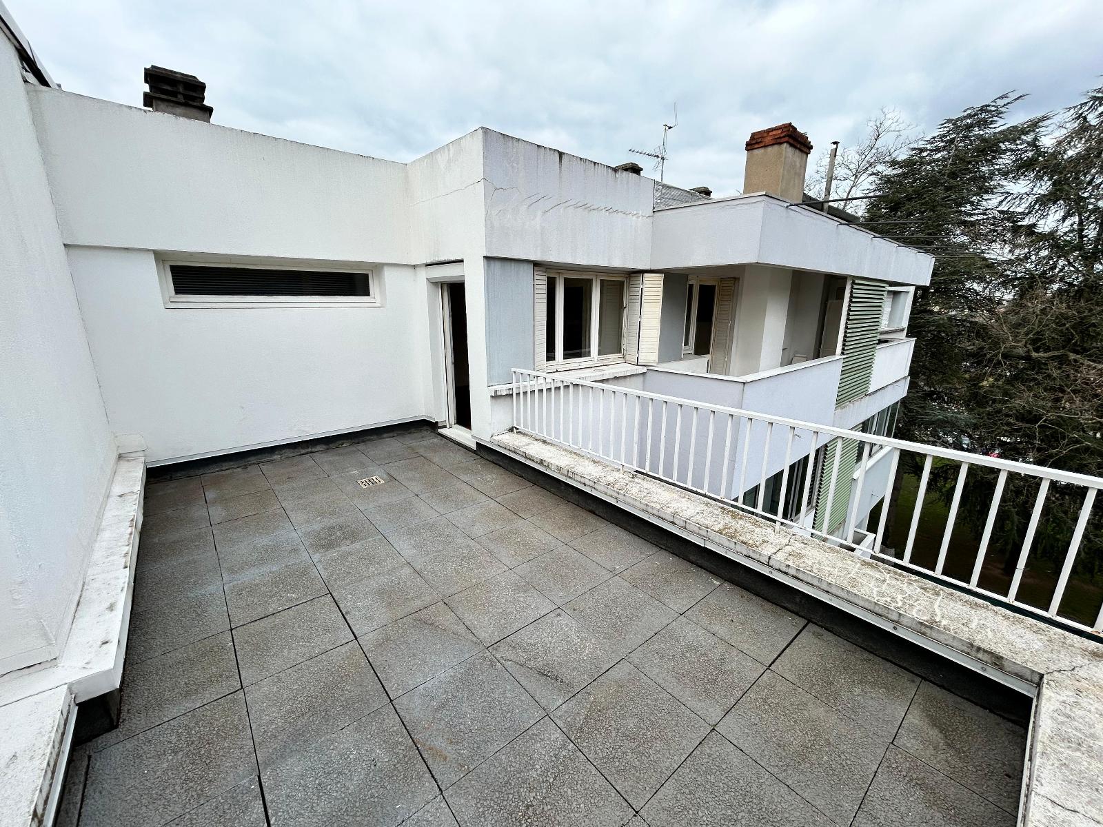 Au 5-ème et dernier étage (avec ascenseur) d'un bel immeuble, appartement T2/T3 de 87m² avec terrasse, balcons, garage et cave !