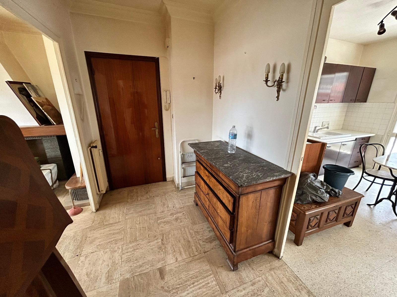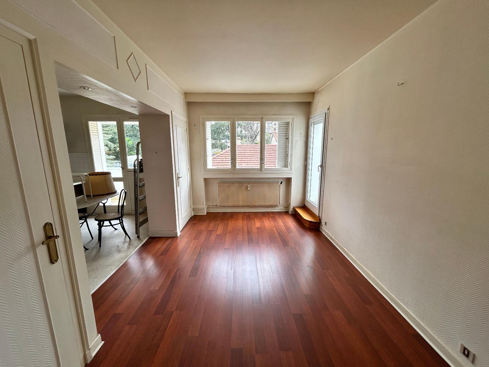 Il se compose d'une entrée, un grand séjour de 29m² avec balcon de 10m², cuisine avec balcon de 5m², salle à manger (anciennement une chambre) avec accès sur une terrasse de 17m², une chambre, une salle de bains et un WC indépendant. Nombreux placards.
